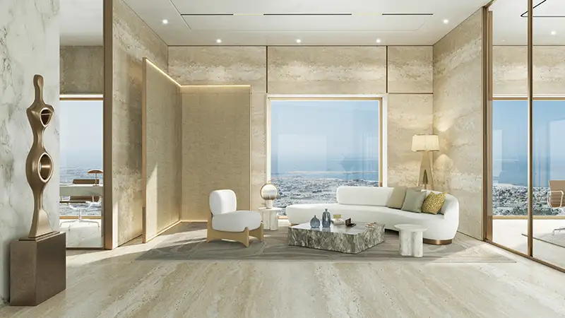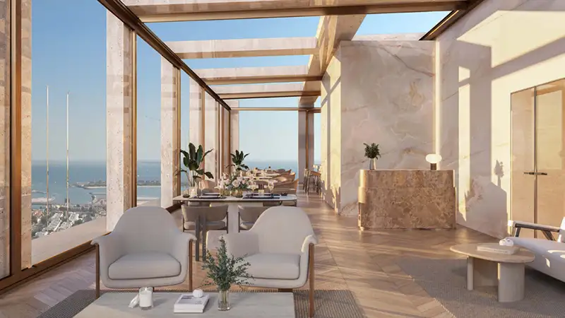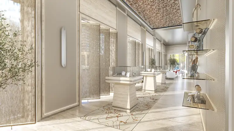 - The interiors feature lavish elements like natural wood, shimmering marble and glistening glass that raise the bar for luxury, elegance and style.