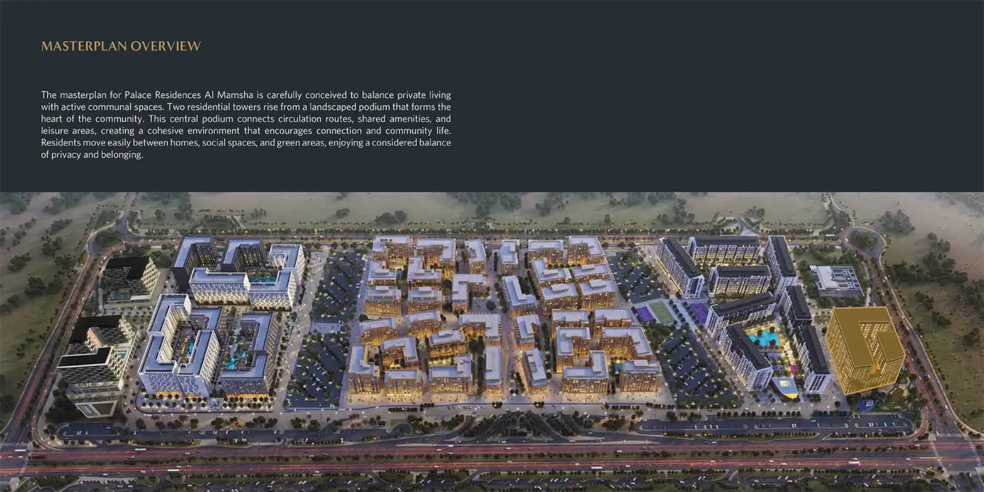 Palace Residences, developed in a joint venture between Alef and Emaar Hospitality Group’s Palace brand, will be set within Al Mamsha community. A master plan that foregrounds openness, walkability and spatial diversity. The layout offering seamless flow of movement, natural light and visual continuity. Planted courtyards, side pedestals and open public spaces are thoughtfully arranged to provide a modern articulation of the traditional courtyard life.