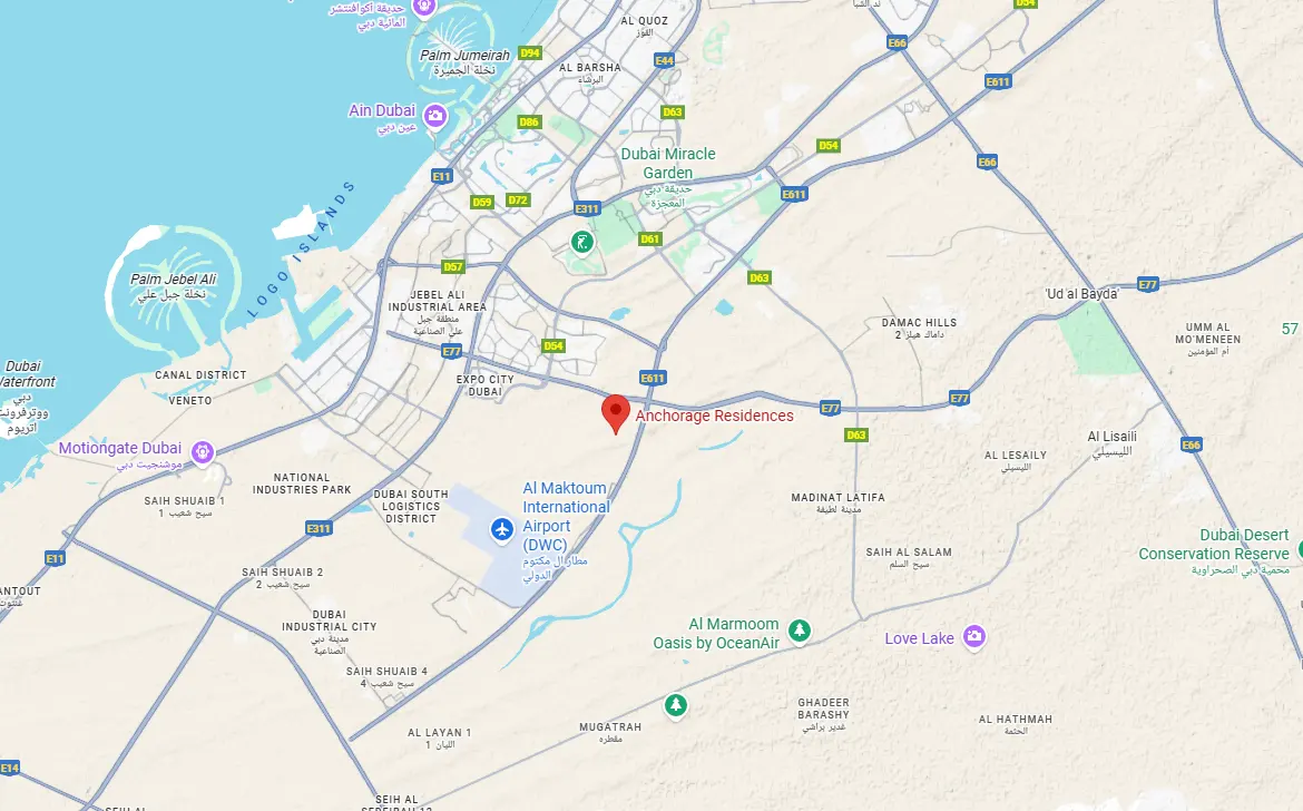 Anchorage Residences, located in Dubai South, this project is developed within one of Dubai’s most ambitious master-planned communities, a city in itself. It also straddles Emirates Road, which is the city’s arterial highway. Situated near Expo City Dubai and Dubai World Central, which incorporates Al Maktoum International Airport currently under development, it boasts excellent road access to the surrounding commercial hub of Jebel Ali as well as major gas reserves at Bab field. And boasting an ecosystem based on the happiness of the individual, with its inspired urban planning this location offers all amenities and lifestyle needs in one place.