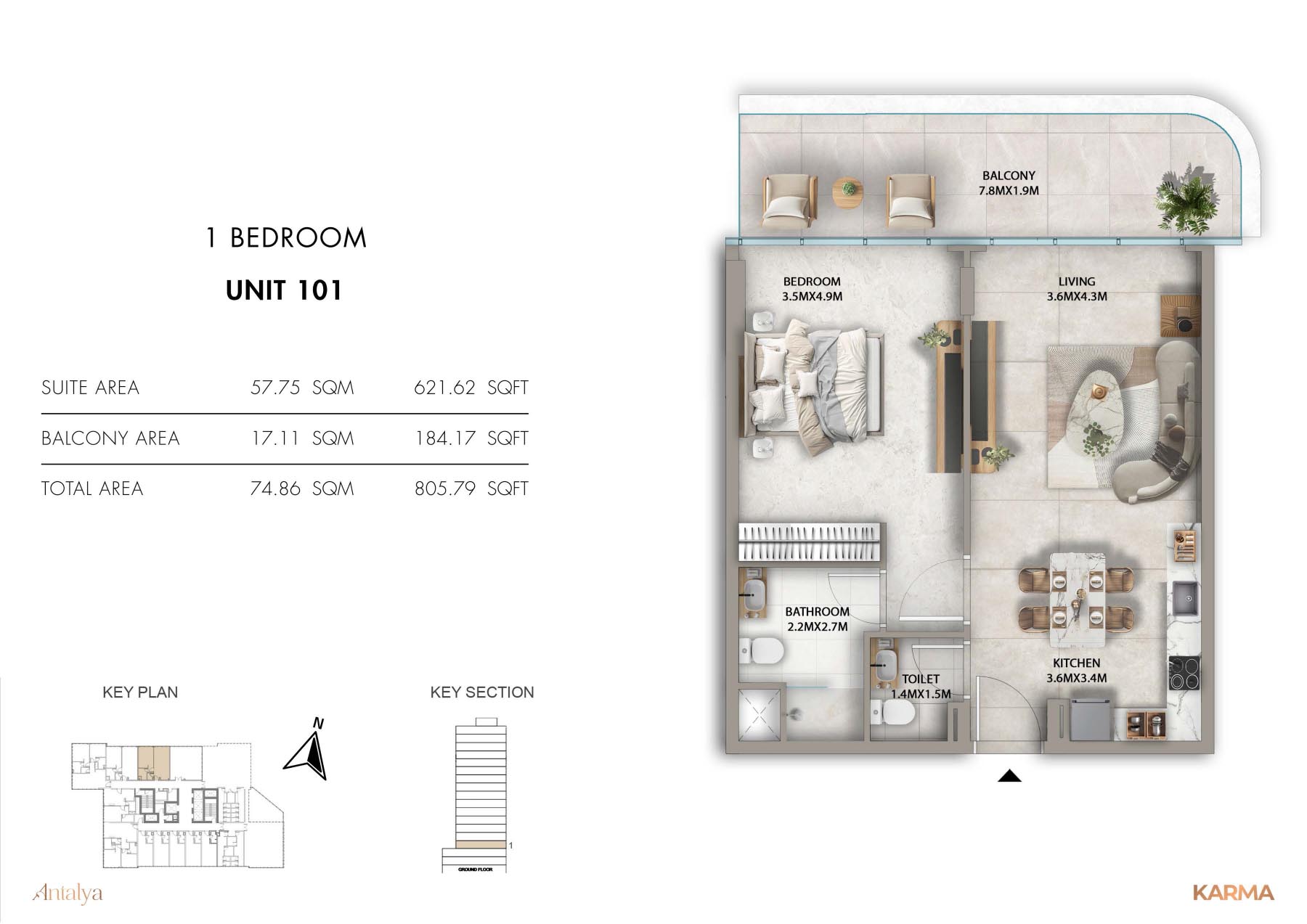 Antalya in Dubai Sports City offers a wide array of intelligently crafted floor plans for different lifestyles. Our one-bedroom apartments are just the right combination of cozy sleeping space and open areas for living, which means they’re perfect for couples and small families who want some alone time, but plenty of together time, too.