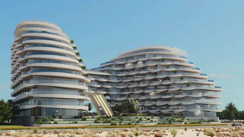 Aqua Arc is a new residential project presented by BnW Developments in the popular location of Al Marjan Island. As a unique project, it symbolizes luxury coastal living merged with contemporary designs. The property offers various types of residences, including 1, 2, 3-bedroom apartments, penthouses, and townhouses all designed with premium features and finishes. The sizes of these houses range from 1030 square feet to 8660 square feet for the penthouse.