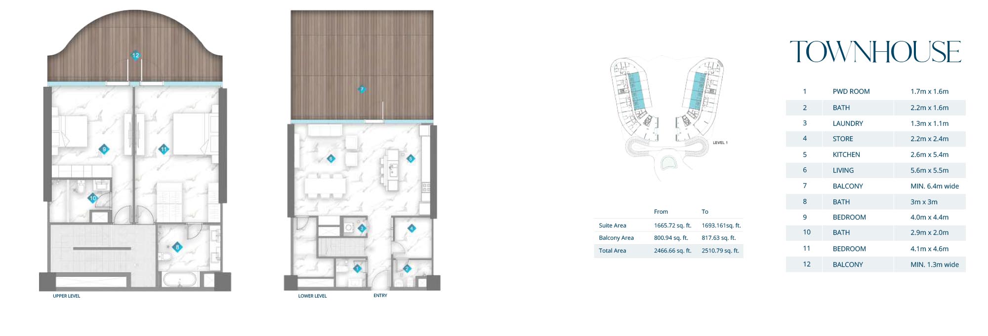 Townhouses Sizes
