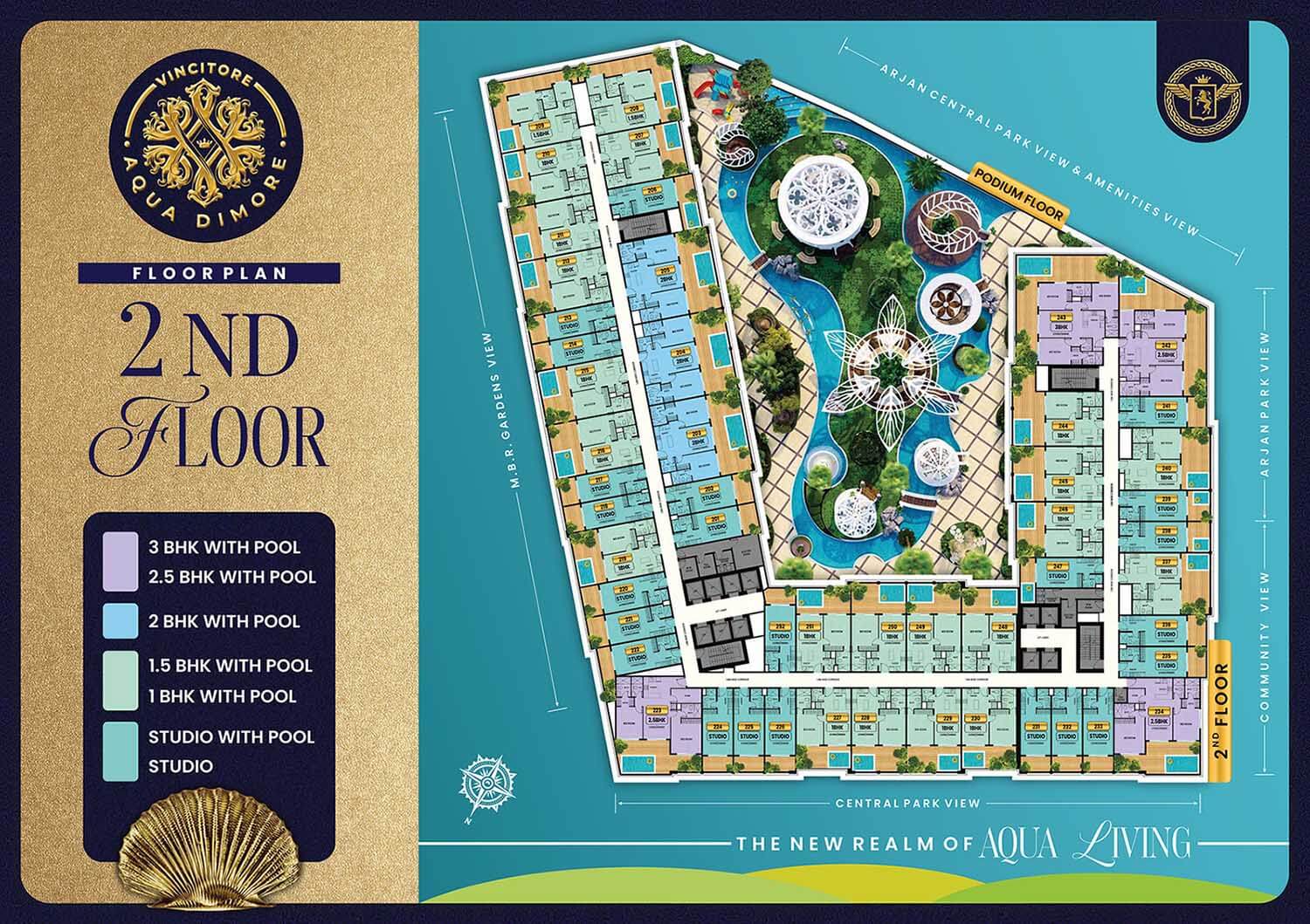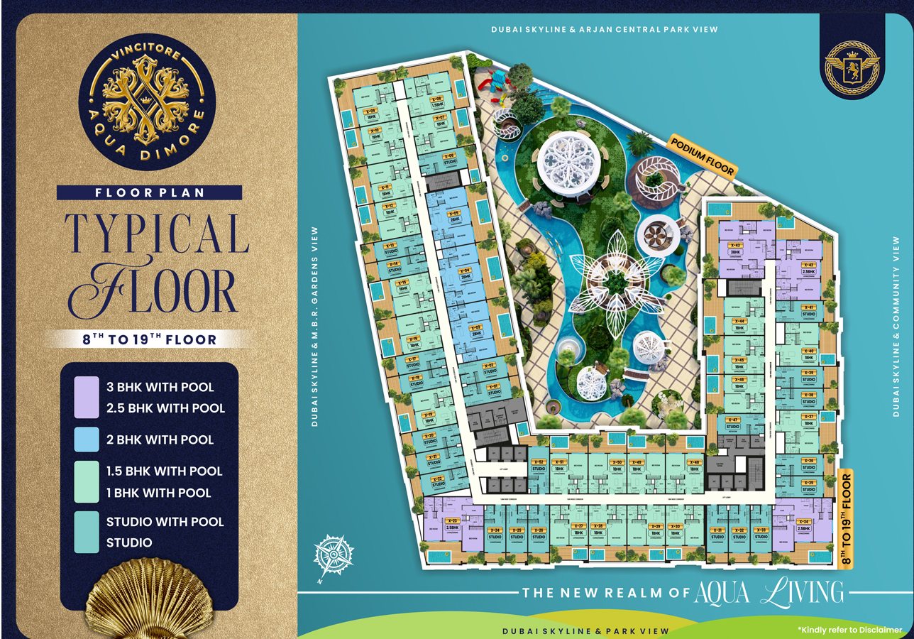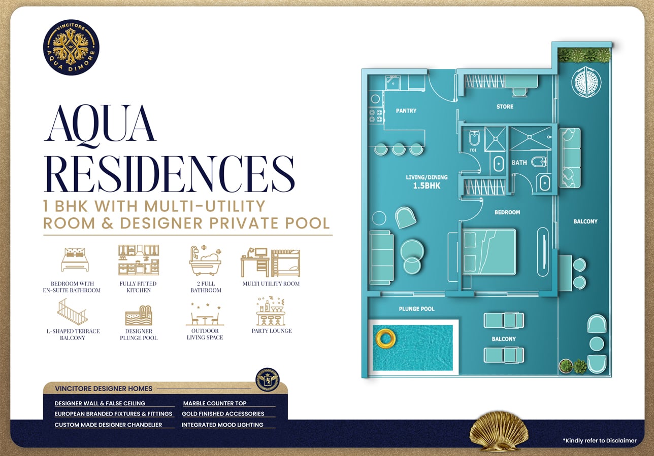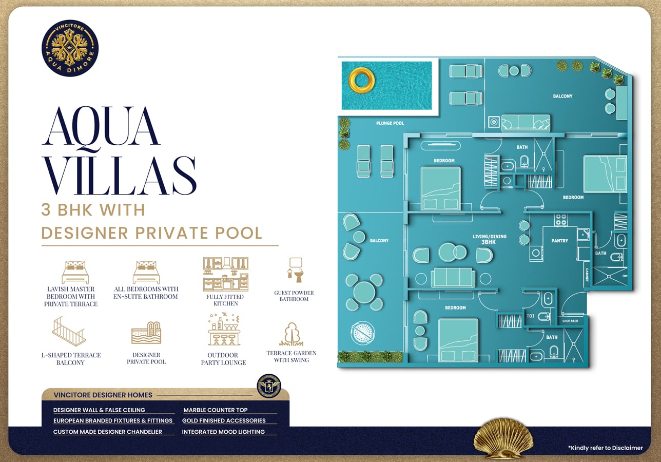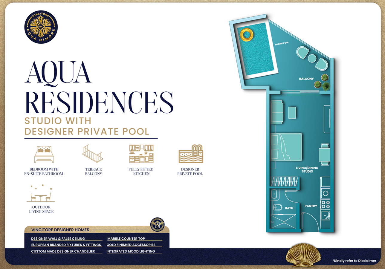 At Aqua Dimore, each home by Vincitore Real Estate is a testament to everlasting craftsmanship. The Italian-inspired interiors incorporate designer lighting, marble accents, and golden metallic details.