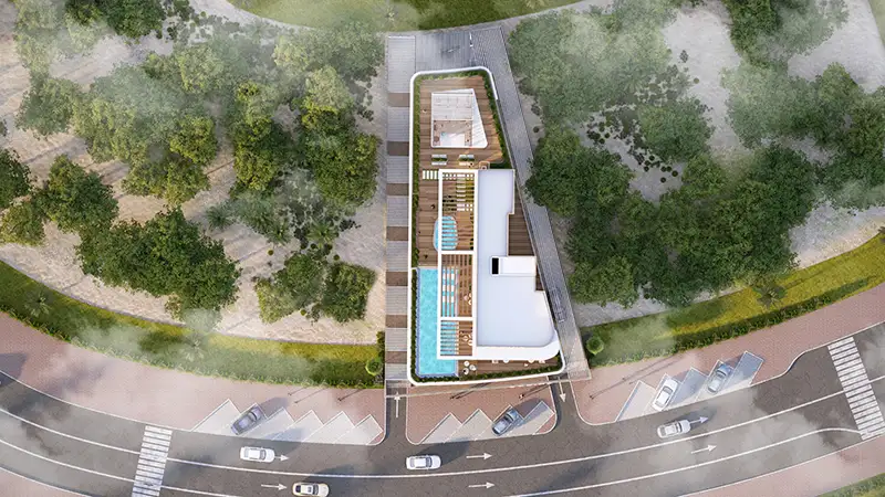 The building showcases a refined minimalist philosophy, where form follows intention and elegance emerges from subtlety. The design of the project communicates through understated beauty and precise detail. Each element of the façade is integrated, blending aesthetic appeal with functionality, and establishing a seamless connection between architecture and nature mirroring the soft convergence of sea and shoreline. Neutral palettes and fluid lines repeat the rhythm of ocean waves, while expansive floor-to-ceiling windows welcome abundant natural light, turning each interior into a radiant sanctuary. Mornings are bathed in golden sunlight, while sunsets gently shift the ambiance into warm, amber serenity.