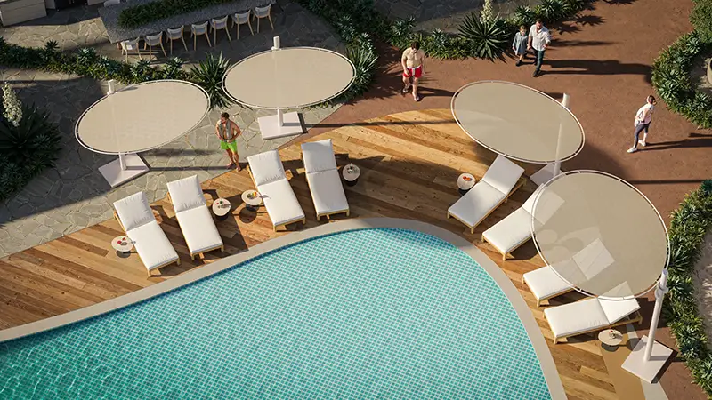 - The complex will be serene and resort like with covered private outdoor space/courtyard/atrium creating a shared environment for relaxation.