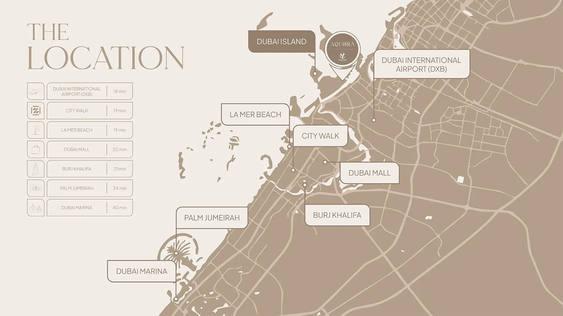 Vibrancy and connectivity meet calmness of scape at Aquora, situated on Dubai Islands. Residents of the project enjoy great convenience to Dubai’s biggest landmarks and its business and leisure hotspots, along with a tranquil lifestyle that will benefit from being surrounded by crystal-clear waters. Its location also provides the perfect balance between the bustling city life and a peaceful life on the coast making it a perfect opportunity for those wanting luxury and comfort.