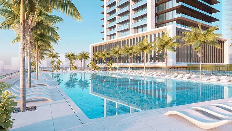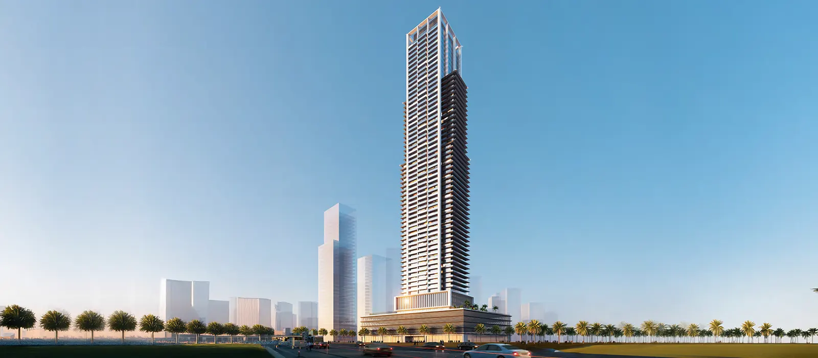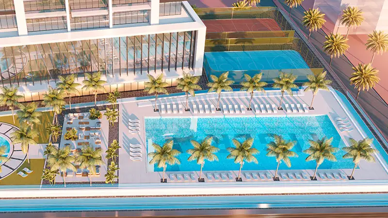 Blending modern, sustainable, and futuristic design, this 63-storey architectural icon features a sleek façade with extended balconies and precise detailing. Above seven parking levels, a landscaped podium offers premium indoor and outdoor amenities. The tower comprises 568 studios, 202 one-bedroom, 40 two-bedroom units, and just 4 exclusive duplexes. The ground floor hosts retail outlets, while levels 1 to 4 are dedicated to office spaces delivering a complete live-work-play lifestyle in one of Dubai’s most dynamic mixed-use communities.