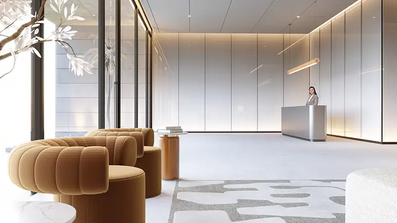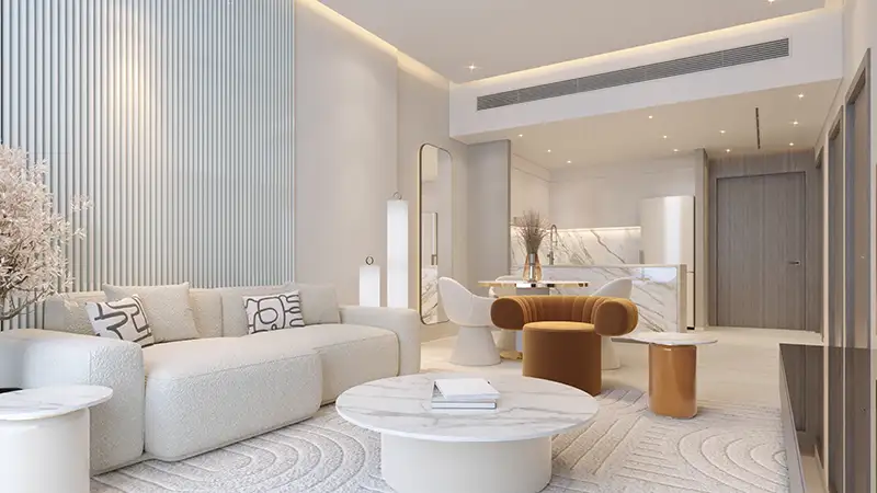 Step into a grand entrance lobby where warm hospitality meets refined aesthetics a tranquil space defined by soft lighting, premium finishes, and minimalist art. Every element, from the natural textures to the serene seating area, reflects quiet luxury, complemented by a high-end surveillance and waiting zone. Inside each residence there are premium materials and warm tones. Bedrooms are designed for calm and comfort where natural light passes inside through expansive windows. It offers spacious private balcony, offering stunning, uninterrupted views of the city skyline blending serenity with elevated urban living.
