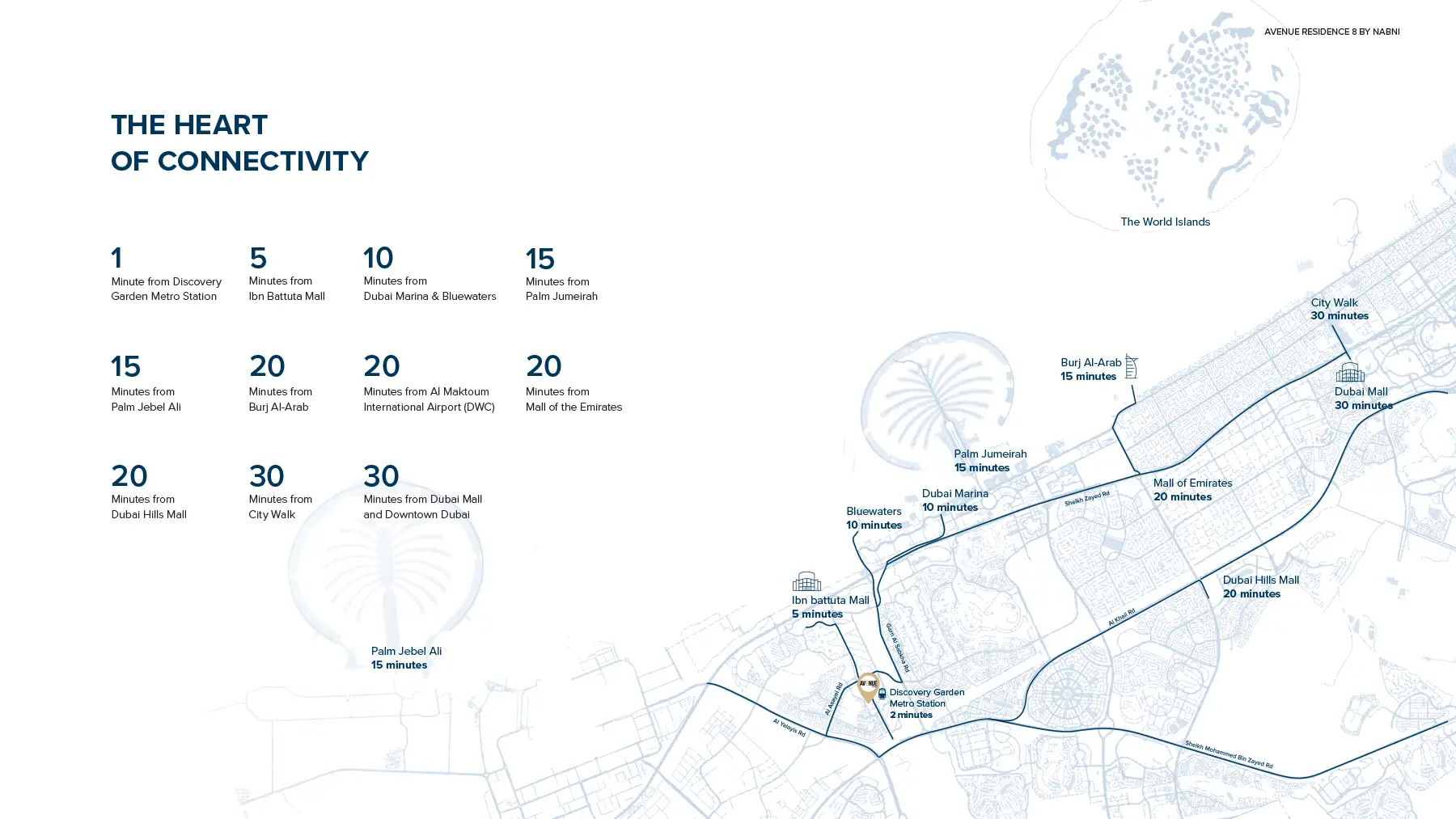 Step into a world of seamless luxury at Avenue Residence 8, perfectly positioned in the heart of Al Furjan, Jebel Ali Village in Dubai. Nestled in a peaceful, green setting connected to the hustle, perfectly situated between Sheikh MBZ, and Sheikh Zayed Roads with a metro connection. Located between Dubai’s major highways and this community ensures that the city is always within reach. This community offers everything schools, mosques, shopping, entertainment, and sports facilities. With the renowned Ibn Battuta Mall just moments away. where technology, luxury, and accessibility converge. The well-planned infrastructure allows effortless commutes to Business Bay, Downtown Dubai, and other commercial districts, making it ideal for both professionals and families. Whether for work or leisure, Avenue Residence 8 brings elegance, comfort, and connectivity together, making it one of Dubai’s most sought-after residential destinations. Live where comfort meets connectivity in a neighborhood built for modern living.