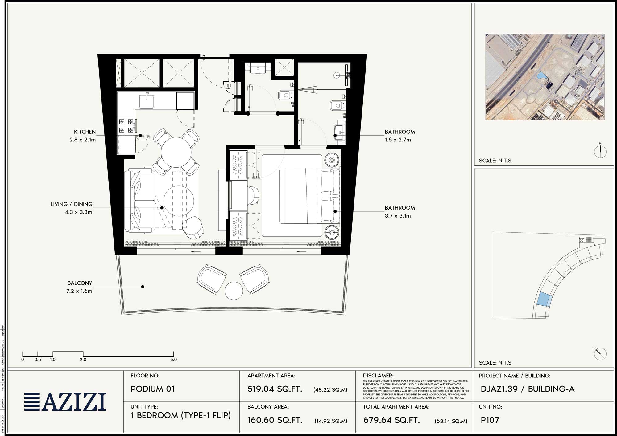 | Building A | 1 Bedroom | Podium 01 (Unit P107 - Type 1 Flip) | 679.64 Sq Ft | Apartments |