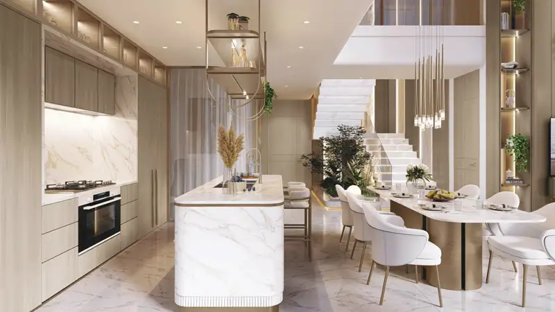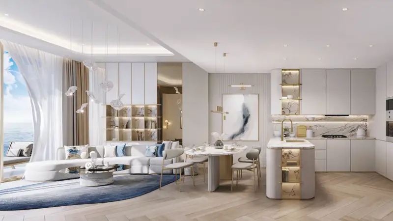 This distinguished residential development offers its residents the luxury of uninterrupted ocean breezes and panoramic island views from a direct beachfront location. This design features modern-style layouts that are complemented by large balconies and ample natural sunlight, evoking the relaxed charm of island living. Each unit is appointed with high-end finishes, lofty ceilings, and integrated smart home systems to ensure both elegance and convenience. This project balances the serene quality of the islands with refined urban sophistication, making it an ideal residence for families and individuals seeking proximity to central Dubai without sacrificing peace and serenity.