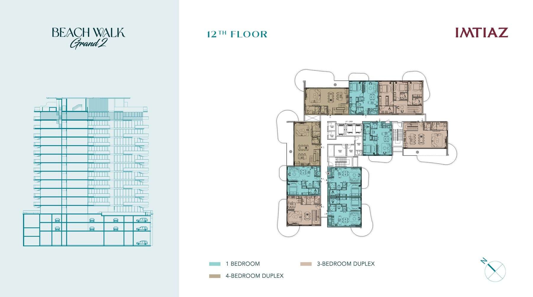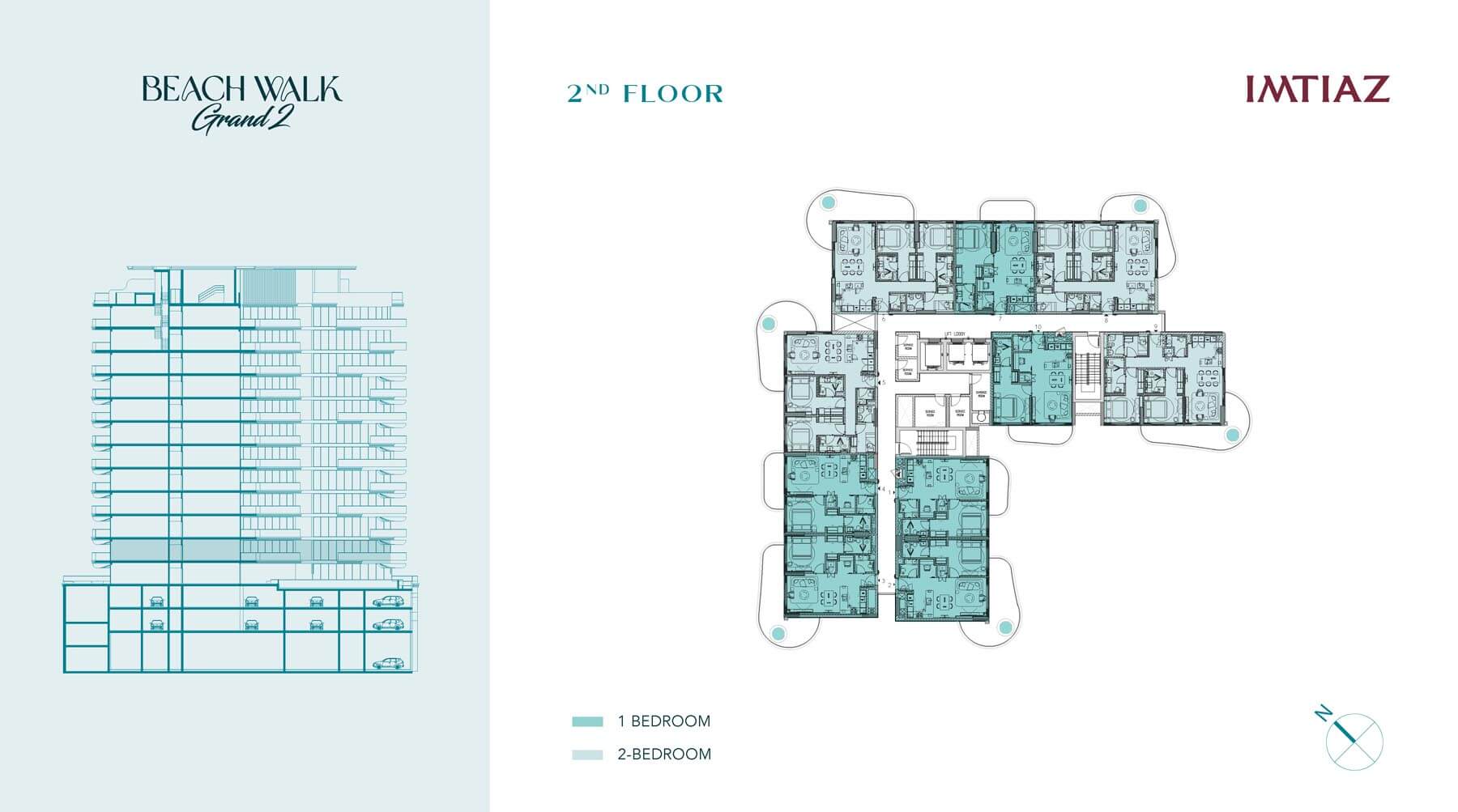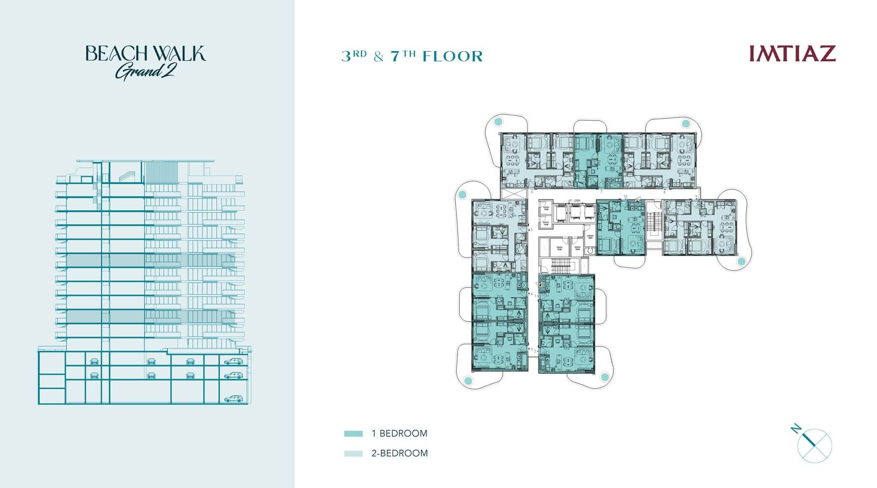 Beach Walk Grand 2 offers variety of floor plans that consists apartments and penthouses in Dubai Island. The open-plan layout facilitates seamless movement between the kitchen, dining, and living areas. The apartment features expansive windows and private balconies, which allow for abundant natural light and offer beautiful panoramic views. Each bedroom is designed and have integrated wardrobes and en-suite bathrooms with premium fixtures. The floor plan is designed in such a way that it maximizes the space for use. Living area is smoothly connected to kitchen and dining area that helps to move comfortable for all.