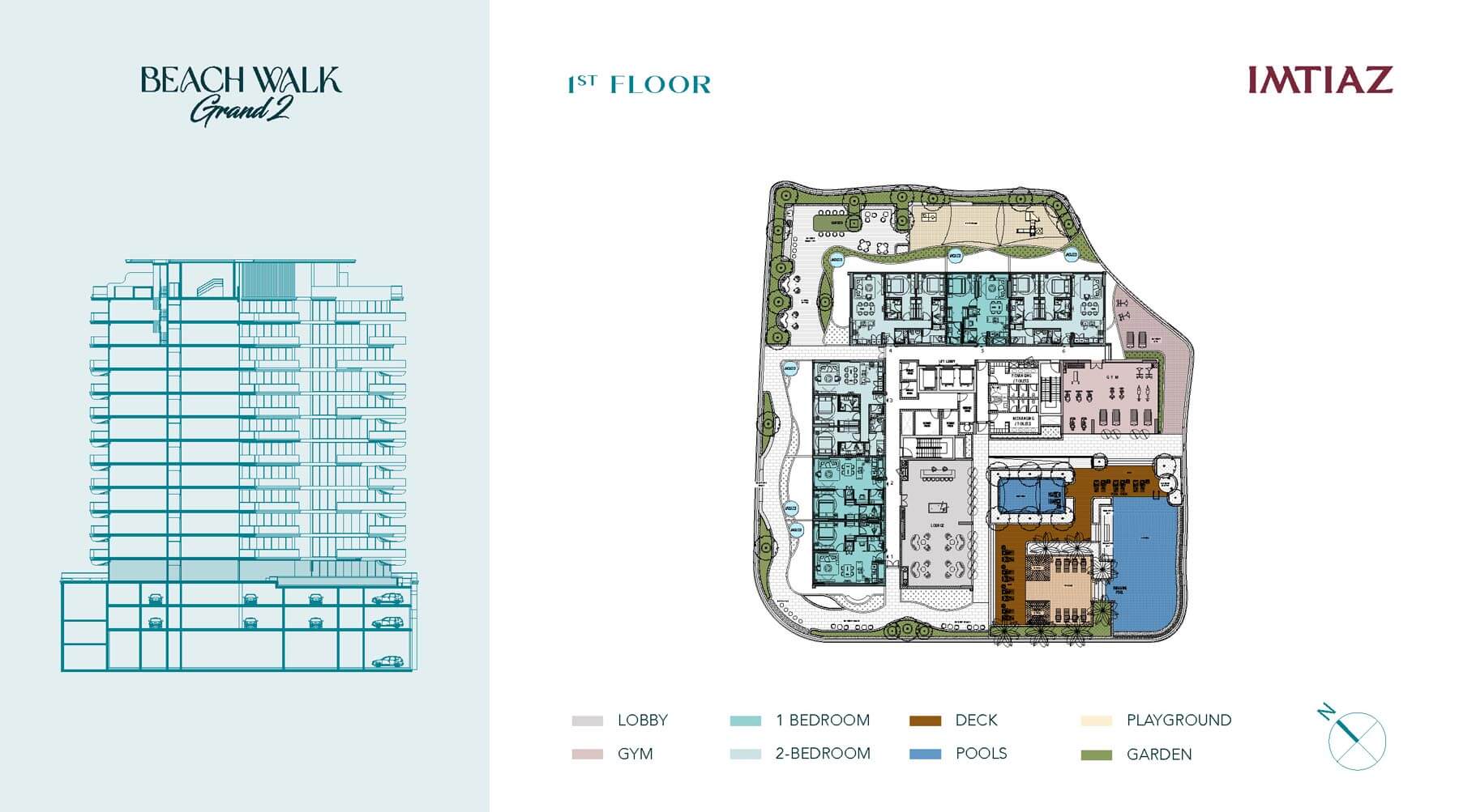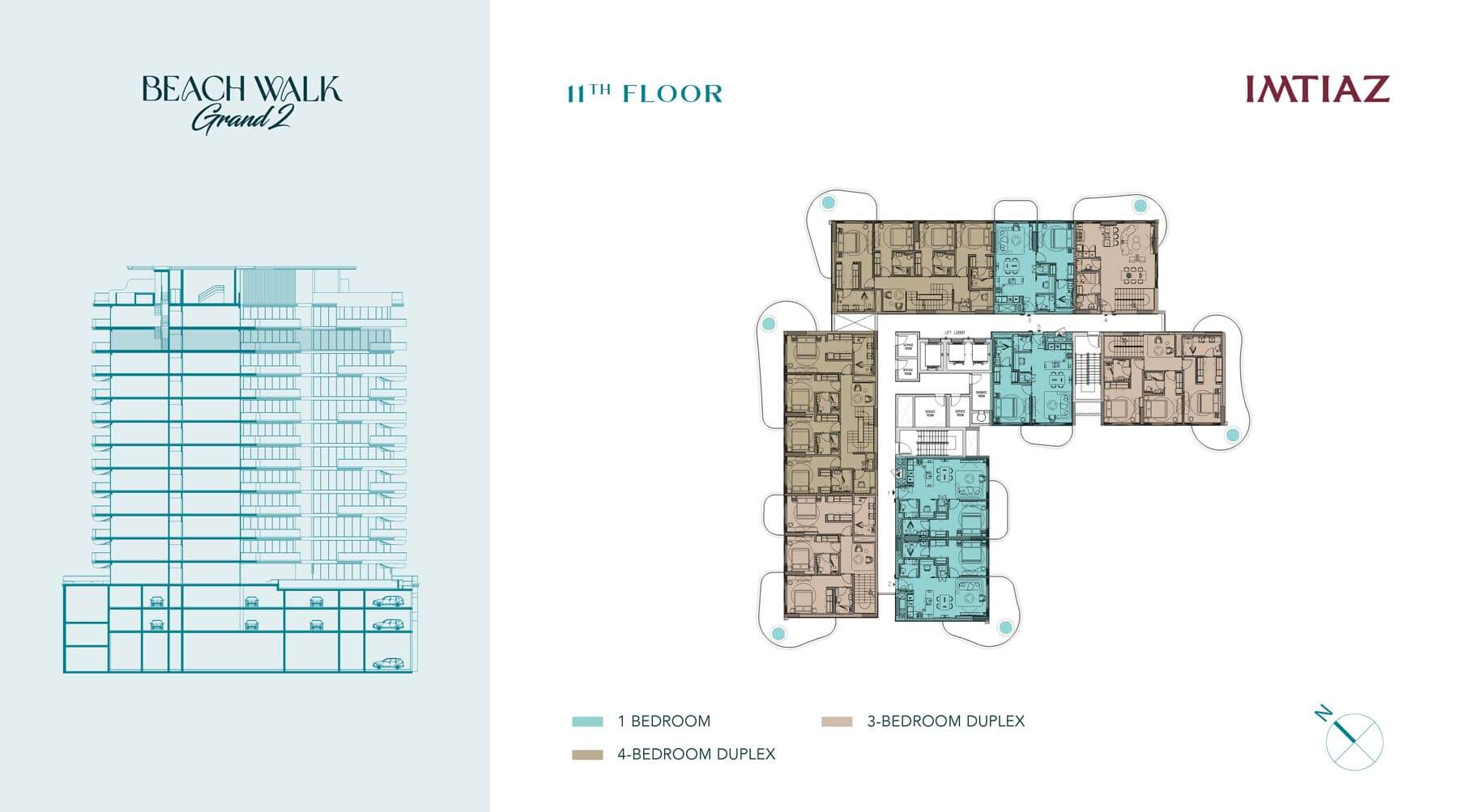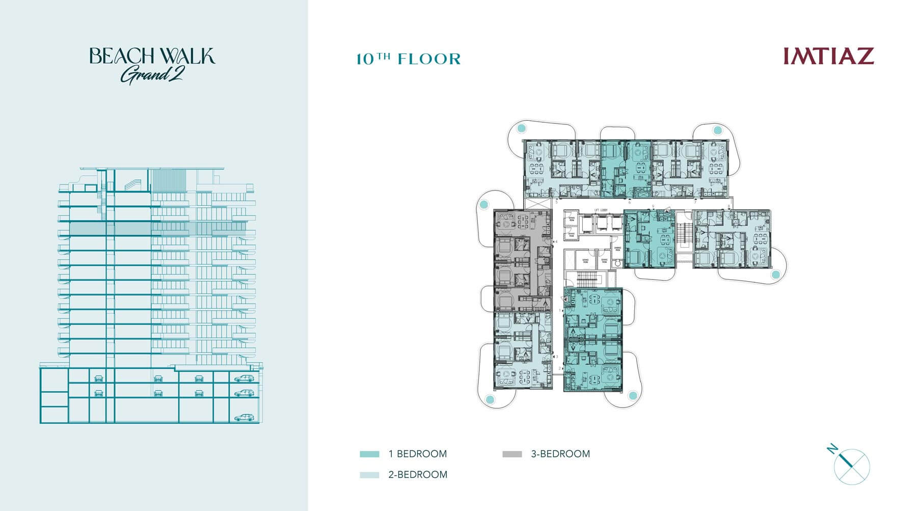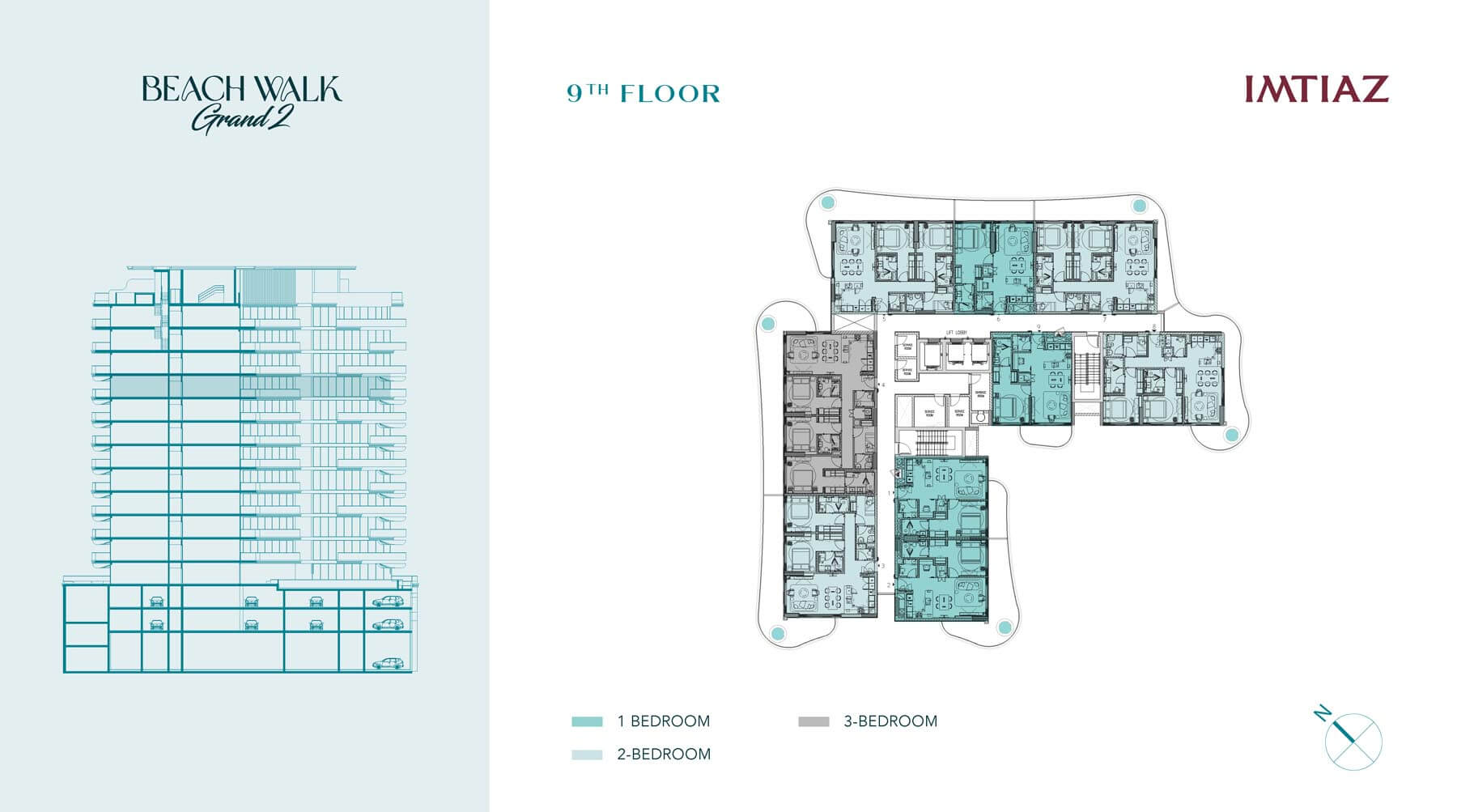 Beach Walk Grand 2 offers variety of floor plans that consists apartments and penthouses in Dubai Island. The open-plan layout facilitates seamless movement between the kitchen, dining, and living areas. The apartment features expansive windows and private balconies, which allow for abundant natural light and offer beautiful panoramic views. Each bedroom is designed and have integrated wardrobes and en-suite bathrooms with premium fixtures. The floor plan is designed in such a way that it maximizes the space for use. Living area is smoothly connected to kitchen and dining area that helps to move comfortable for all.