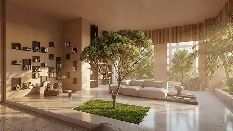 The project is enveloped in pristine greenery that enhances the tranquility of the neighbourhood. The project has a stylish facade with soft lines and warm materials, reflecting a strong balance between aesthetics and practical living. Its open-plan design and generous residences are made for living they feel at home among today's open-minded multifunctional spaces & contemporary residential architecture.