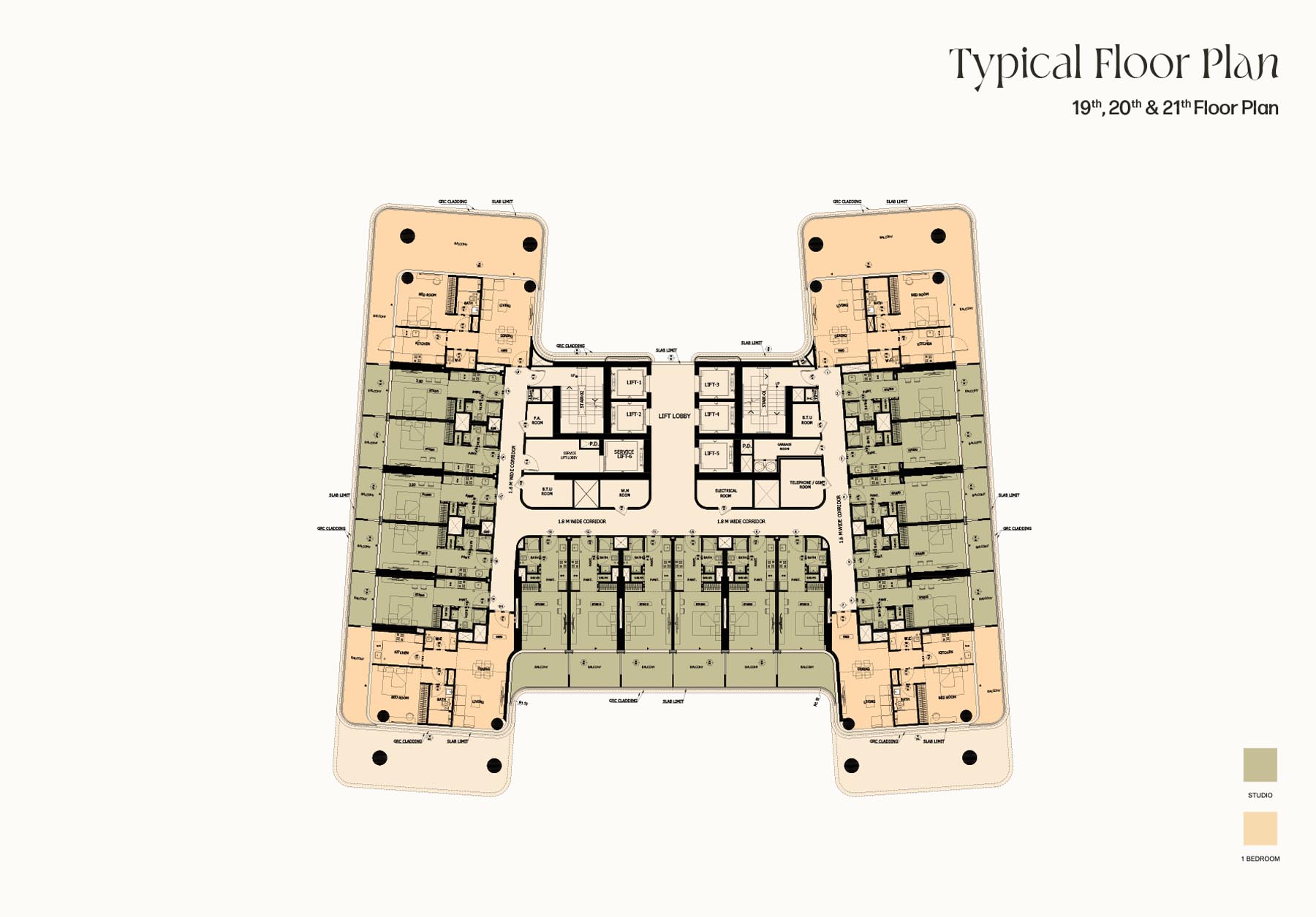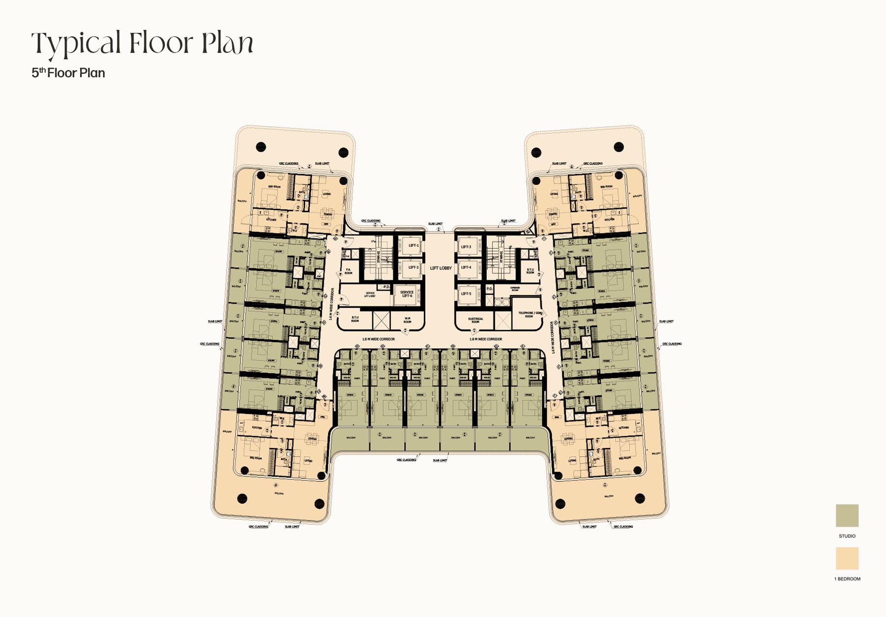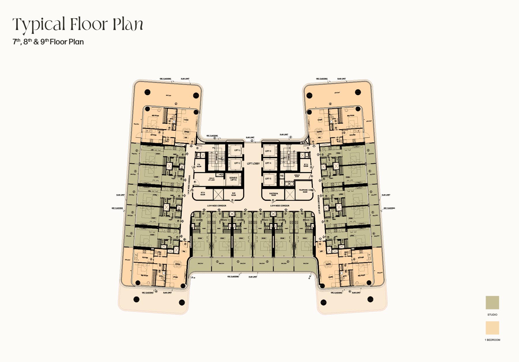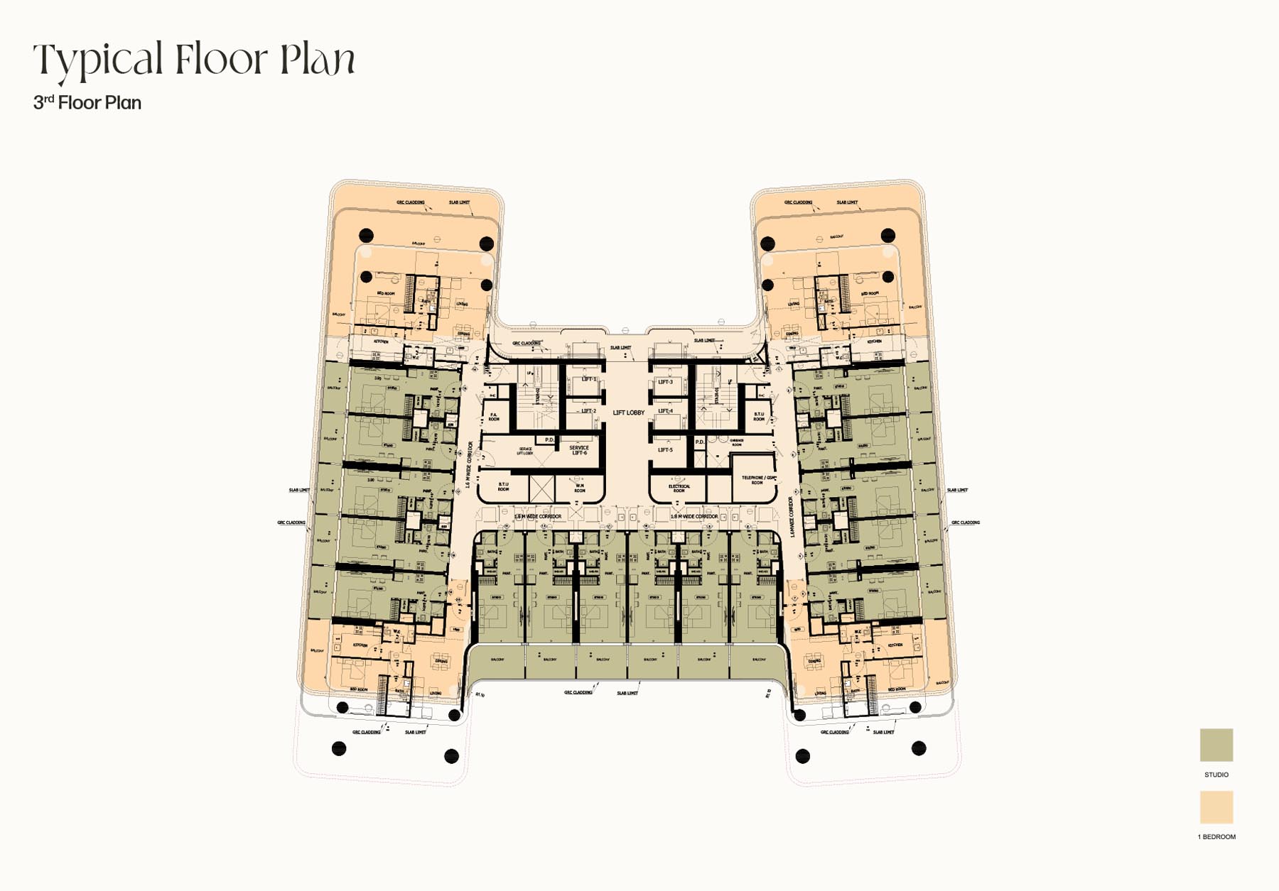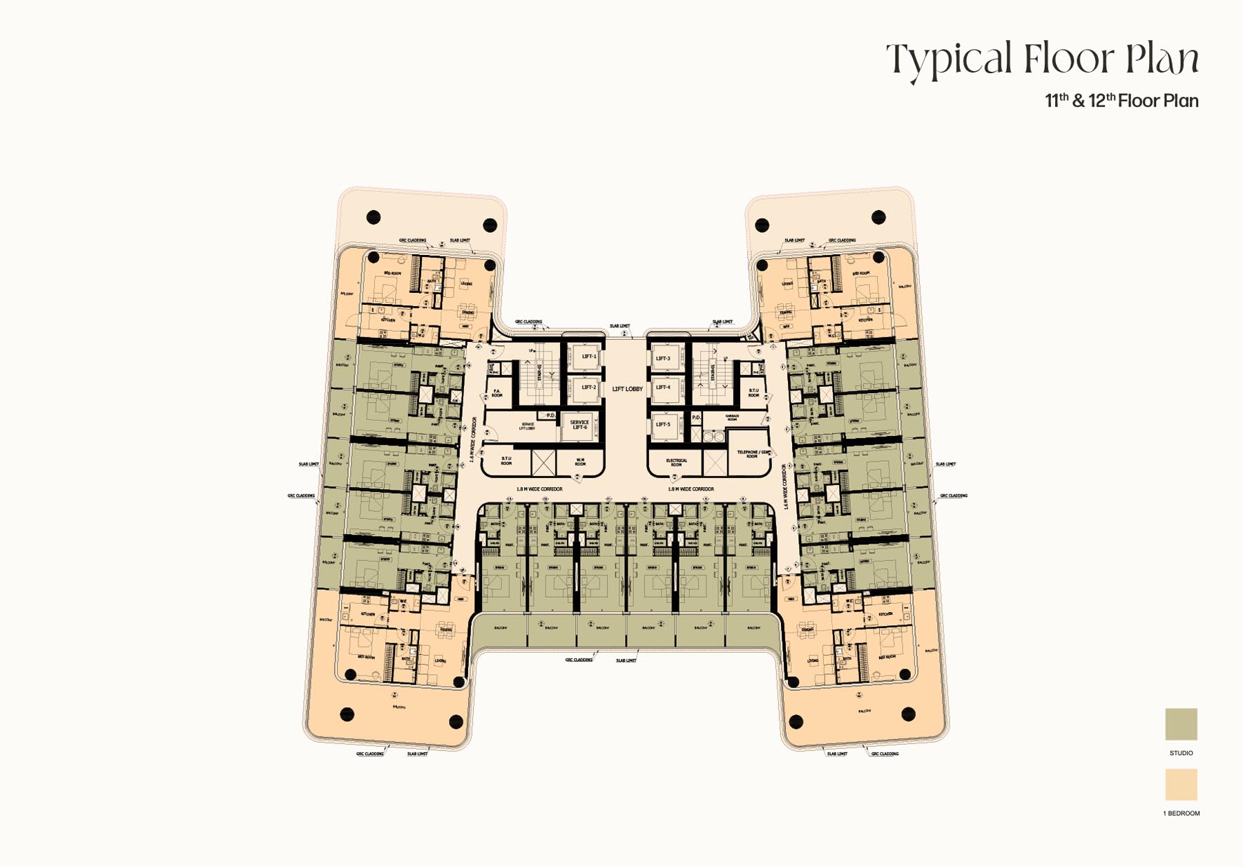 Binghatti Hillside offers a diverse array of floor plans, meticulously crafted to offer a variety of lifestyle needs, ensuring a perfect fit for all residents. Each floor plan takes full advantage of the surrounding environment, ensuring that the interiors are flooded with sunlight throughout the day. Large windows and strategically placed openings allow natural light to stream in, creating a bright and welcoming atmosphere in every room. The layouts are crafted to maximize usable space, with functional areas that make everyday living easier and more efficient. Every room is carefully planned to allow for flexibility, so whether you're hosting guests, working from home, or simply relaxing, you’ll find the space meets your needs seamlessly.