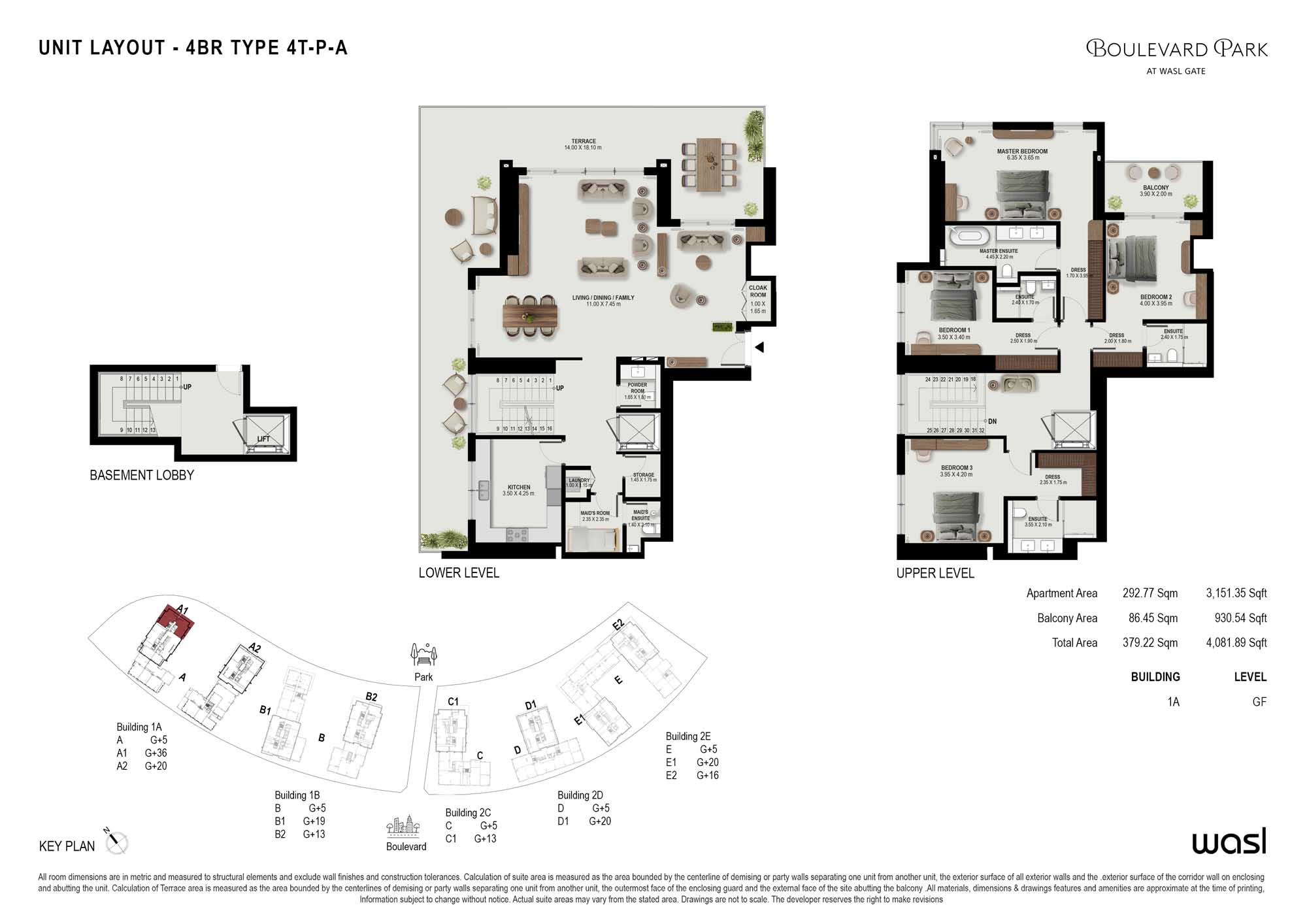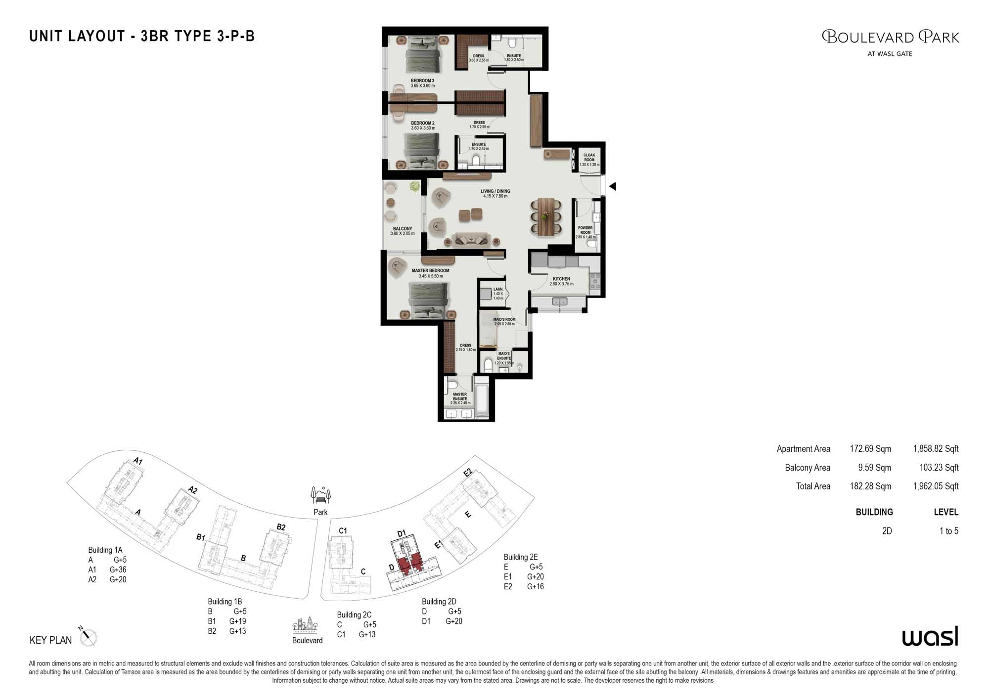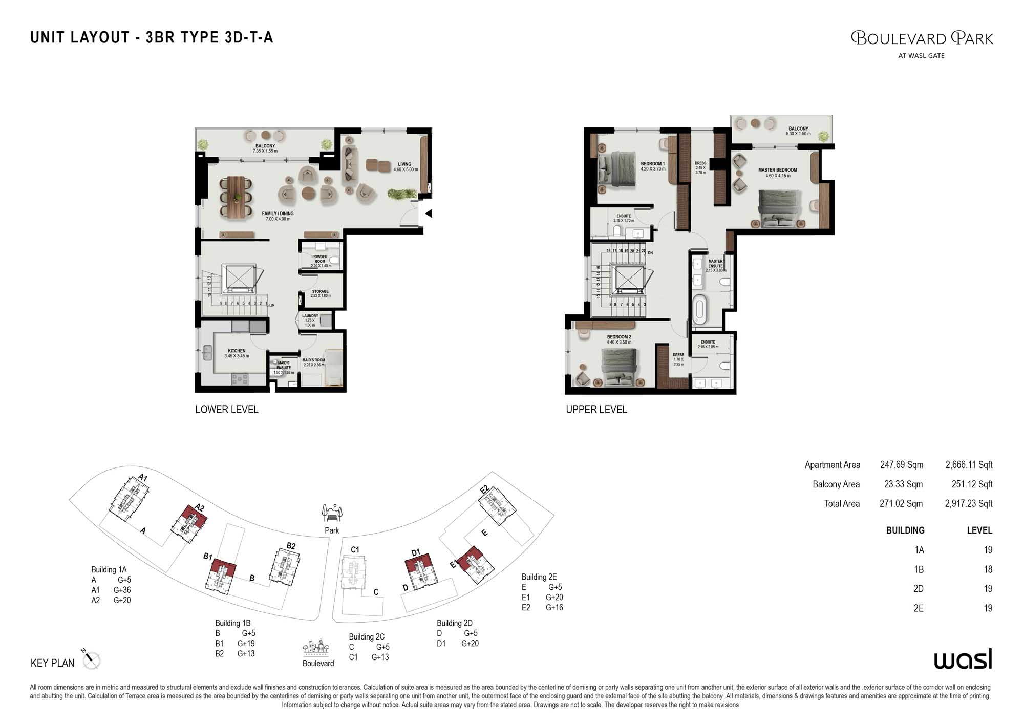 Boulevard Park at Wasl Gate, Jebel Ali Village presents smartly configured floor designs for studios and 1-Bedroom, 2-Bedroom, 3-Bedroom & 4-Bedroom homes. With the optimized use of space, daylight and comfort. Residences boast open-concept living and dining areas, spacious bedrooms, contemporary kitchens, and private balconies with views of Central Park or the lively boulevard. Bigger units are created with a harmonious interaction of private and public spaces, for both utility and appeal. On multi-level duplexes, penthouses and townhouses, the experience is further elevated with private elevators from parking to residence, large terraces and flexible spaces that can be Gardens offer spacious living suites all homes seamlessly blend practicality with modern luxury.