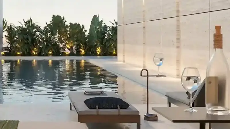 - Amenities including a rooftop pool, kids play area, gym, beach access, jogging circuits, parks, parks, and lush environs.