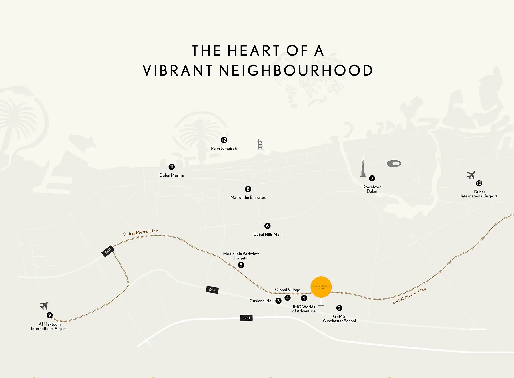GHF Real Estate developed California Residences a master-planned community with refined selection of modern and stylish homes with contemporary features. It is located within a thoughtfully curated master plan, it blends townhouses, villas, and residential towers amidst lush landscapes and decorative garden spaces.