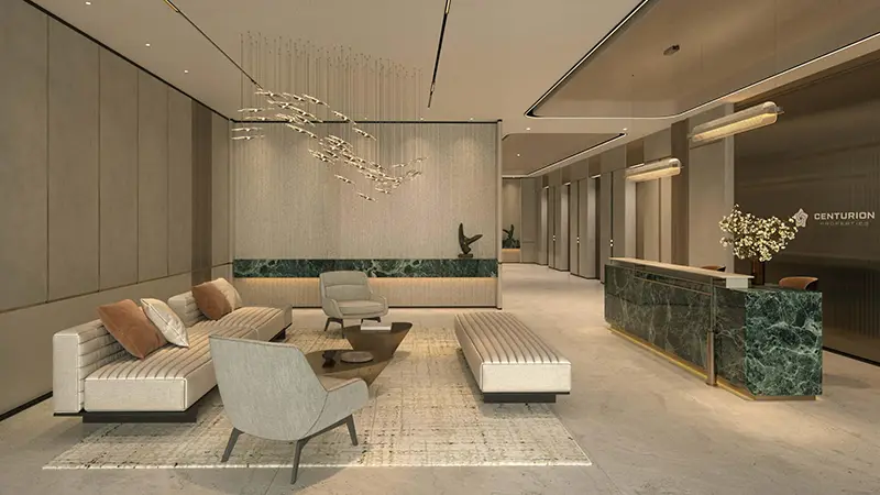 Inspired by the tower’s shimmering façade that features modern lustre and utility. Featuring only premium office suites, it has the versatility for everything from a start-up to a global company. Space is tailored to take advantage of natural lighting and improved workflow, and to outfit employees with the latest technology, so the environment is conducive to high performance and growth.