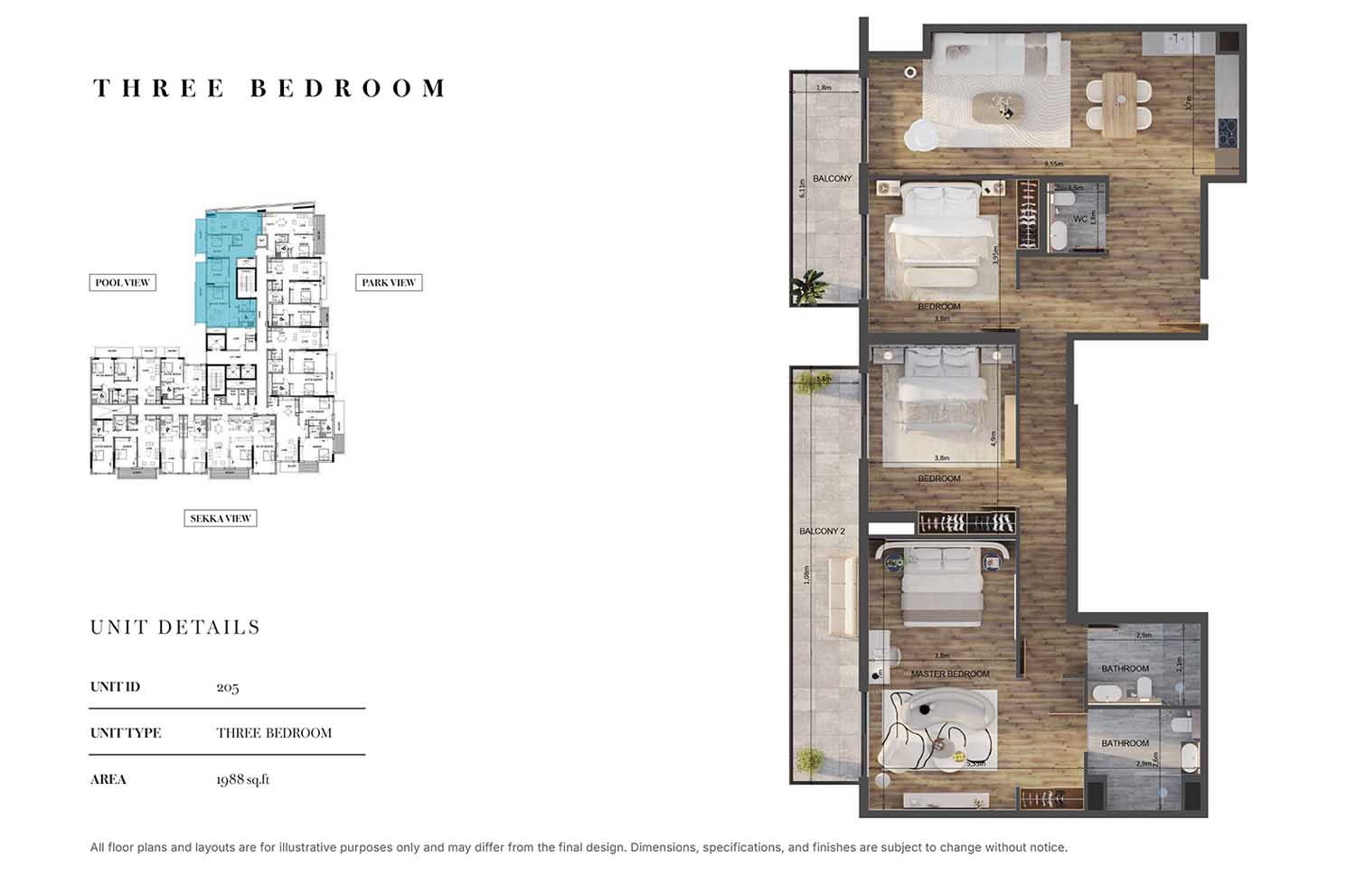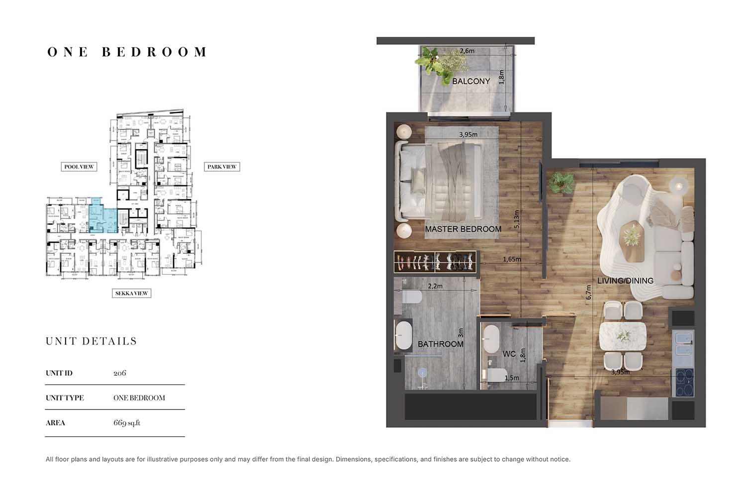 As part of the Carmel Residence in Jumeirah Village Circle, these seamlessly flowing studios and 1, 2 & 3-bedroom apartments. This project is all designed with a combination of smart floor plan layouts that promote space as well as natural light. Homes in the building include an open layout of living, dining and sleeping quarters together with built-in loggias, contemporary kitchens and oversized windows to allow light and air while creating a sense of openness.