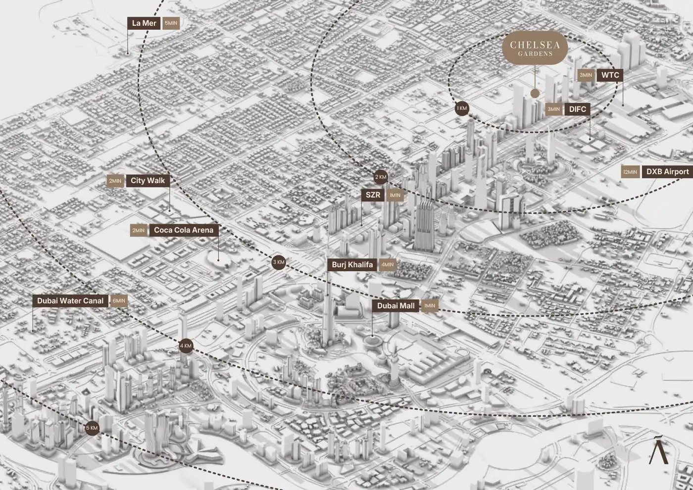 Chelsea Gardens, a famous residential development in Jumeirah Garden City, Al Satwa, Dubai, offers residents an opportunity to experience modern living. Designed for those who wants dynamic lifestyle, this prime complex seamlessly integrates contemporary design, strategic location, and world-class amenities. This famous residential community is famous for its lively atmosphere that offers affordable shopping center restaurants, and boutique retail outlets within one of Dubai’s most historic neighborhoods. Strategically positioned near two major metro stations and Sheikh Zayed Road, residents enjoy seamless connectivity to key destinations, including Dubai International Airport, Palm Jumeirah, and Dubai Marina. Enriched by its rich heritage, the area provides easy access to iconic landmarks such as Jumeirah Beach, Jumeirah Mosque, the Dubai Frame, the Museum of the Future, the World Trade Centre, DIFC, and the prestigious Burj Khalifa district.