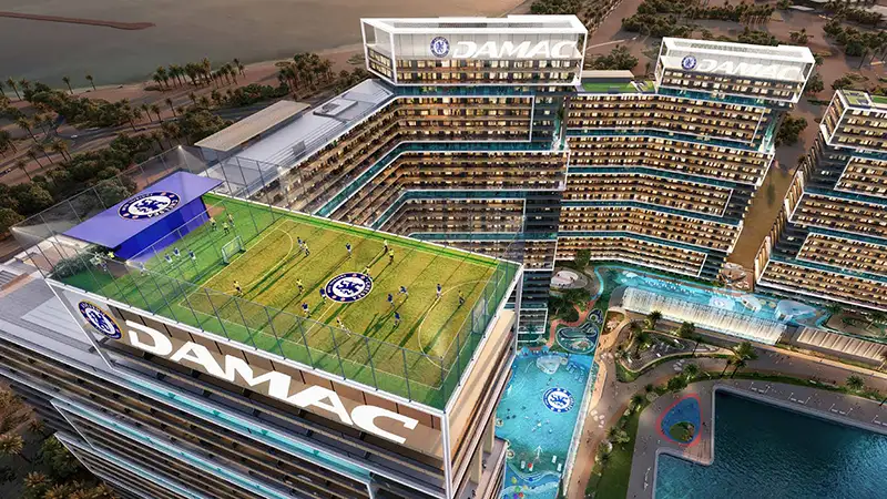 Chelsea Residences 2 located at Dubai Maritime City that provides an unique collection of 1 & 2-bedroom apartments developed by Damac Properties. This masterpiece tower enjoys a prime, front-facing position with uninterrupted views of the city’s expansive skyline. It smoothly matches with the rich heritage of Chelsea FC with Dubai’s visionary real estate strategy, crafting a lifestyle that harmonizes dynamic urban living with elevated standards. Phase 02 rises with equal importance as Phase 01. It introduces three new towers that are Buildings A, B, and C bringing the total to three towers per phase. Together, they redefine waterfront living through a fusion of excellence, ambition, and athletic sophistication.
