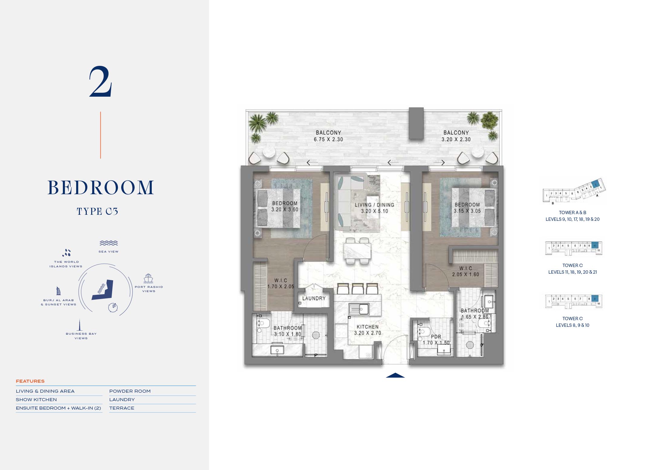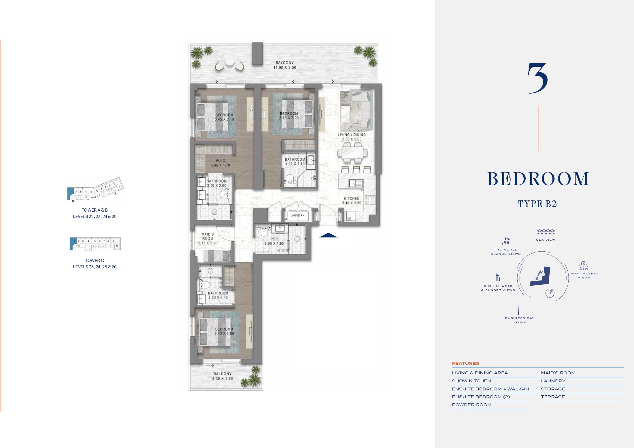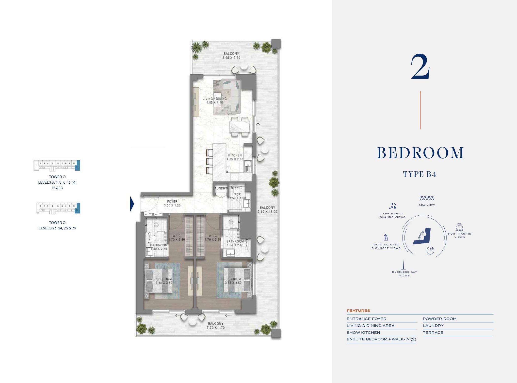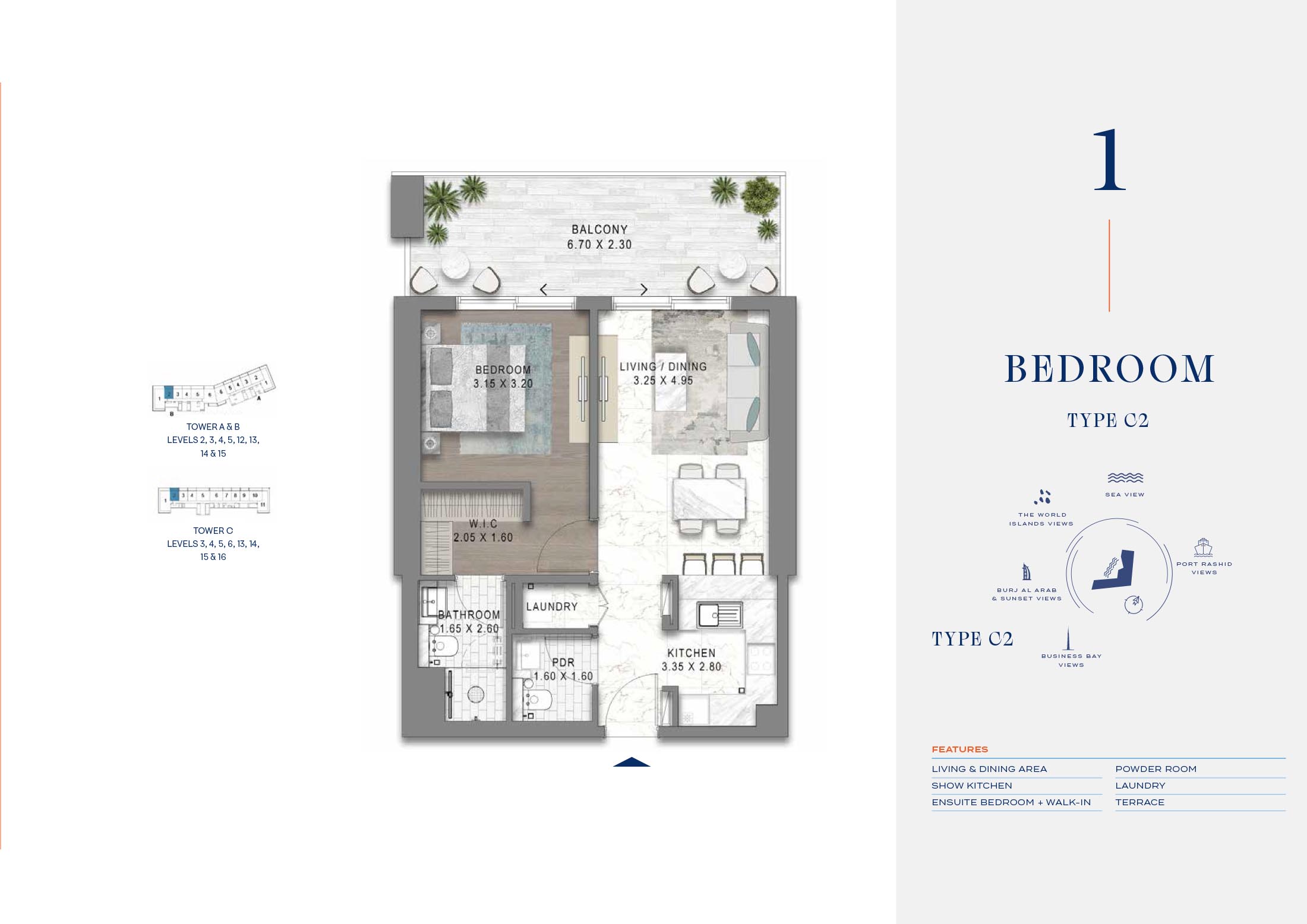 Chelsea Residences, a unique project which has unique designed floor plan of 1, 2 & 3-bedroom apartments at Dubai Maritime City. Every home feature a smart open-plan layout that brings in tons of natural light and fresh air, with amazing views of the sea and city. The interiors are laid out to give you defined spaces to live, dine, and rest while still leaving room for your own style.
