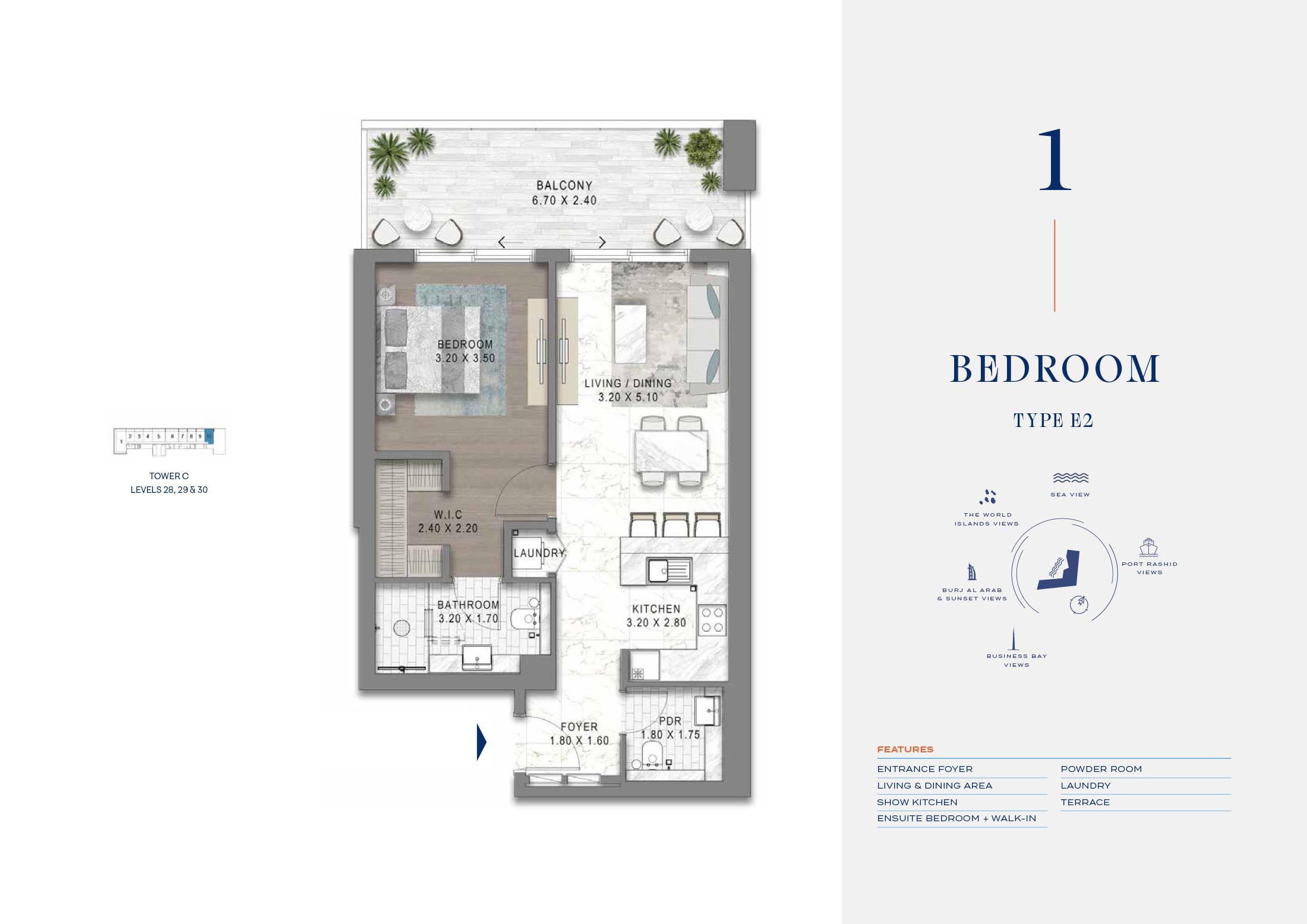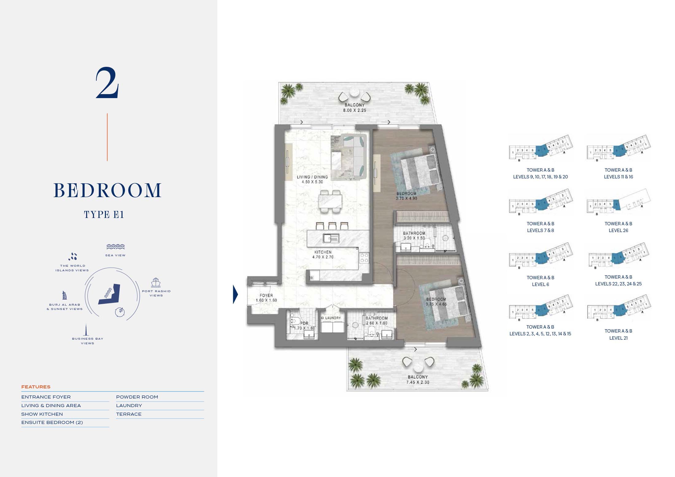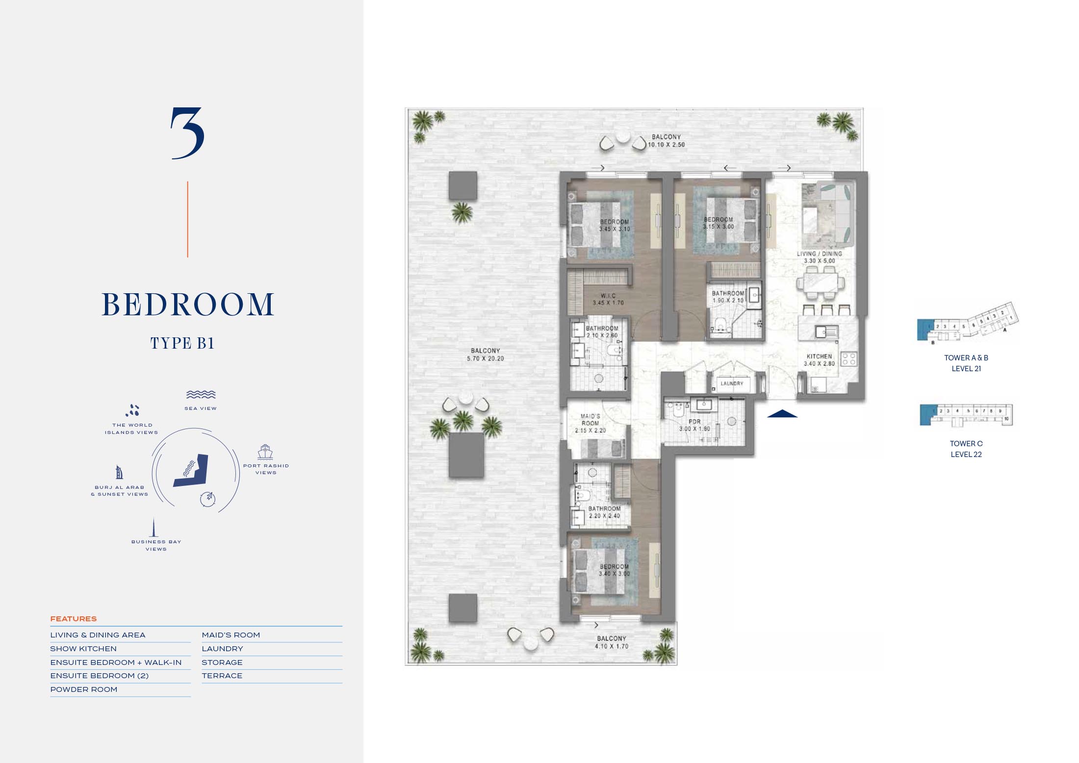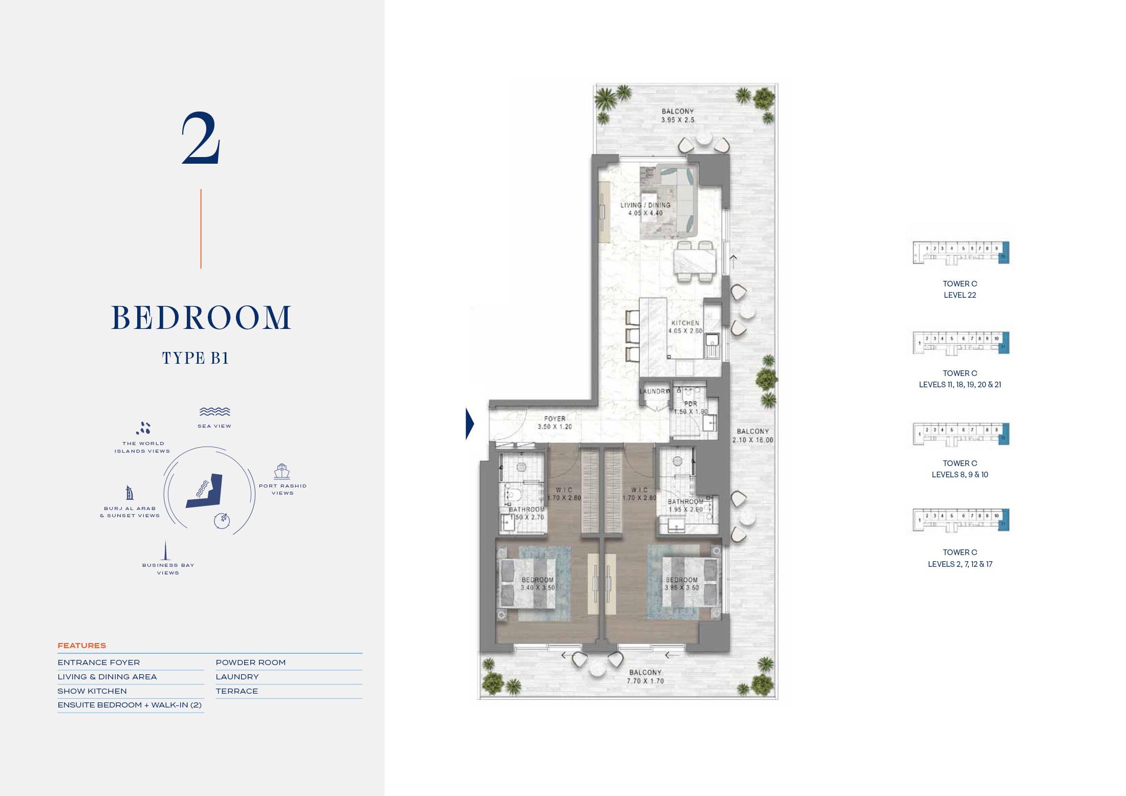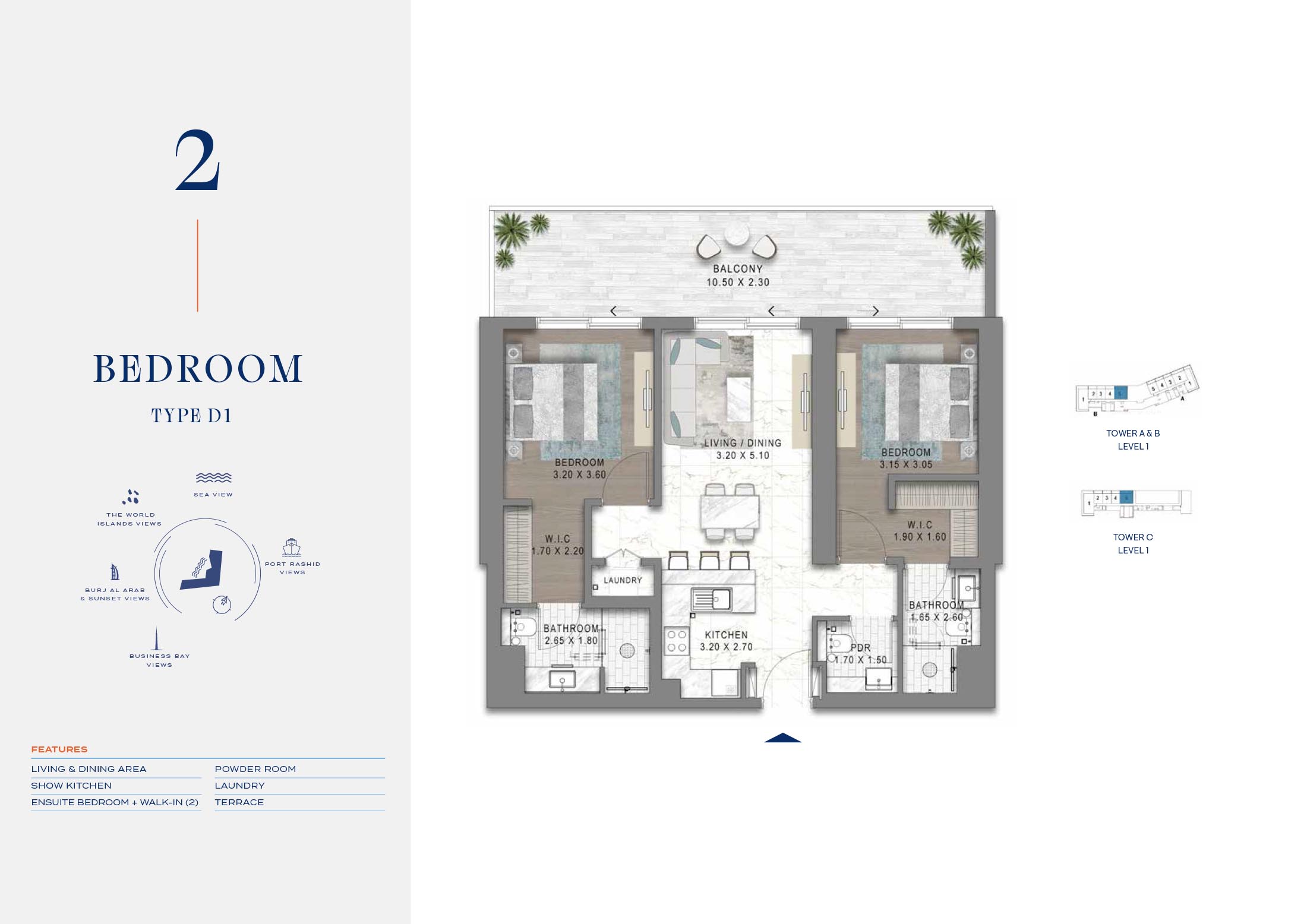 Chelsea Residences, a unique project which has unique designed floor plan of 1, 2 & 3-bedroom apartments at Dubai Maritime City. Every home feature a smart open-plan layout that brings in tons of natural light and fresh air, with amazing views of the sea and city. The interiors are laid out to give you defined spaces to live, dine, and rest while still leaving room for your own style.