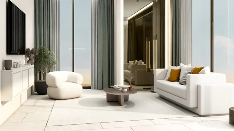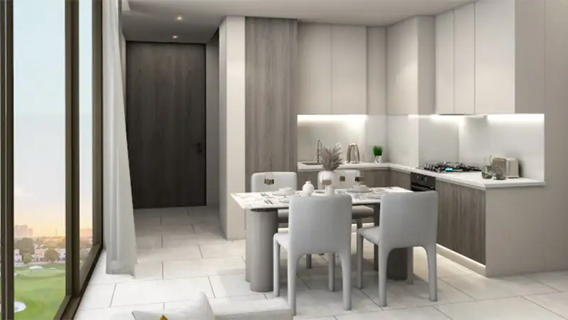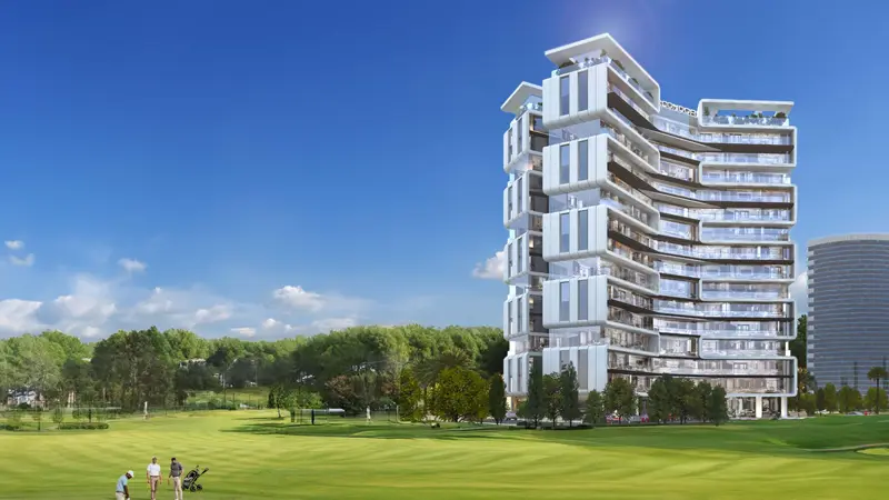 The homes are elegant in their minimalism with open-plan interiors, neutral decor, and upscale finishes. Kitchens have contemporary appliances, and wide balconies expand indoor living to the outdoors. Intelligent storage solutions maximize functionality, and the lobby greets residents with a dramatic olive tree, a sign of peace and international golf culture. The development comprises 252 units altogether, and it brings a balanced composition of living spaces: 126 studios, 98 1-bedroom units, and 28 2-bedroom homes.