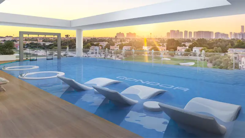 - Resort-like facilities, such as infinity pools, lap pool, jacuzzi, and outdoor fitness areas.