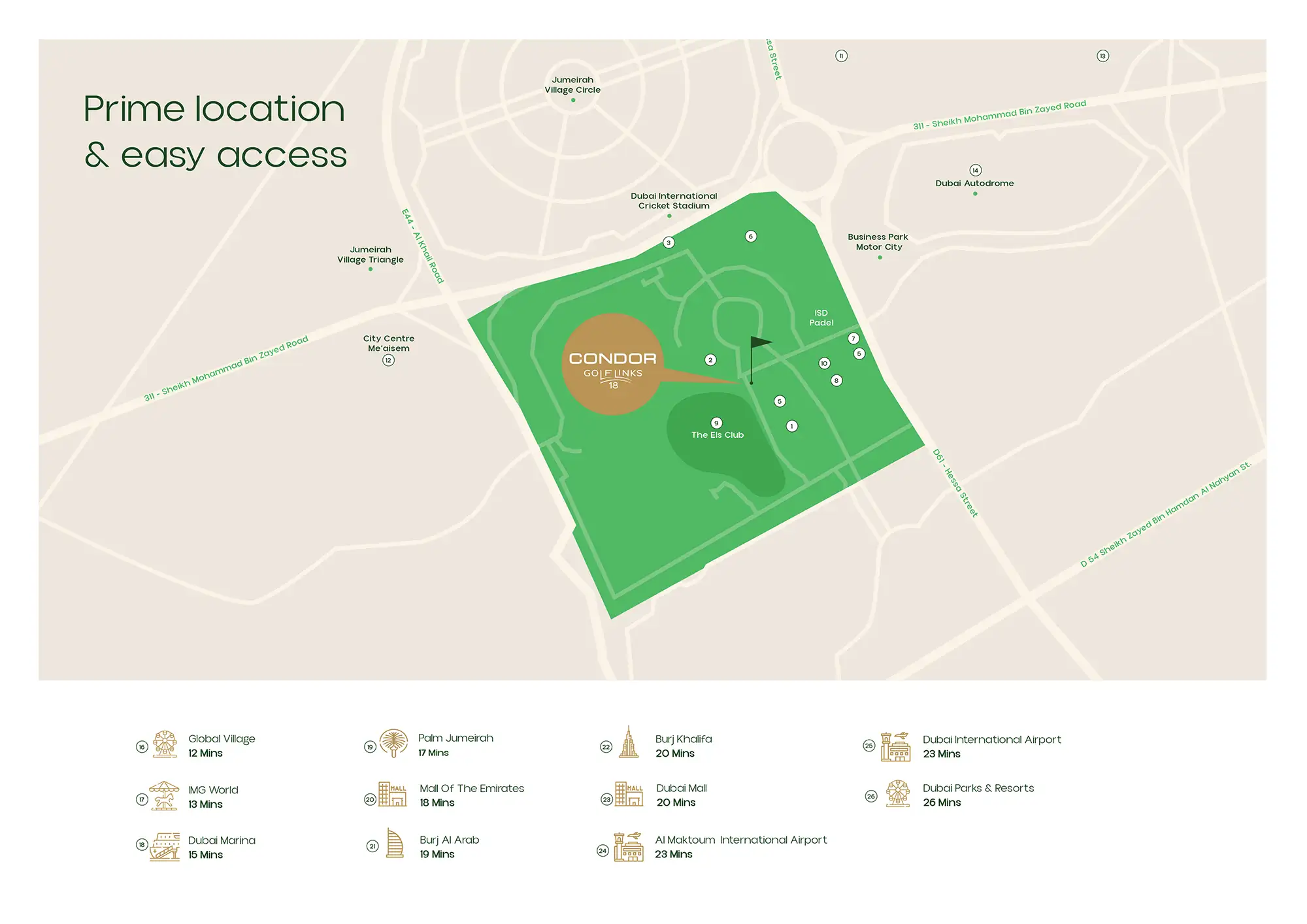 The project will also feature a variety of entertainment and family-friendly amenities like an outdoor movie theatre, children’s play areas and an outdoor putting green. Based within walking distance of luxury sports facilities such as The Els Club and Dubai International Stadium, residents will have unrivalled access to leading sporting experiences. This project combines a lifestyle aesthetic with a vibrant, communal environment in the heart of Dubai supported by strategic access to Dubai’s prominent roads and the city’s premium entertainment and leisure spots.