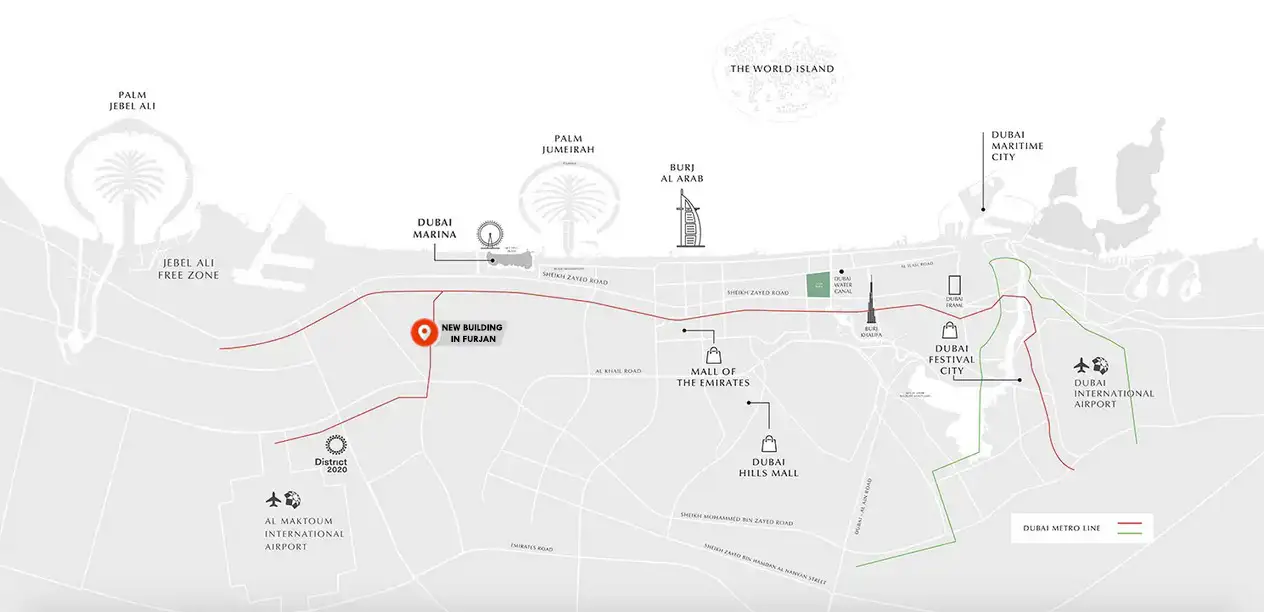 Cubital Heights 2, in the bustling Al Furjan Dubai, has been conceptualized to create a feeling of connection and community among residents. Direct access to Mohammed Bin Zayed Road and Sheikh Zayed Road gives the convenience of lifestyle and promotes travel to and from key business districts and leisure hubs while linking Dubai and Abu Dhabi easily. While residents have a peaceful environment to escape the fast pace of the city. A vibrant cultural hub with easy access to all modern facilities from schools to shopping malls and entertainment, this location is an ideal combination of greenery, connectivity and urban life.