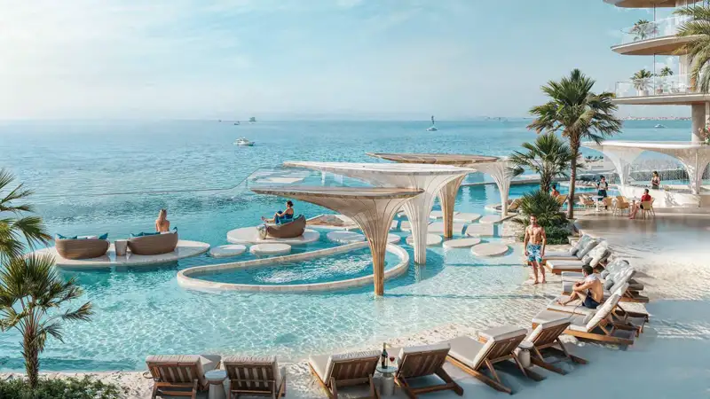 Breez by Danube, the latest offering of its kind in Dubai Maritime city, is a development that brings the best of both worlds. Inspired by a water theme, the project includes distinct water-based elements such as infinity pools, Breez Lagoon, Jacuzzi lounges and splash zones as well as sandy beach decks to simulate coastal living. The entire design is devoted to establishing an experience in which rest and relaxation effortlessly meld with daily living.