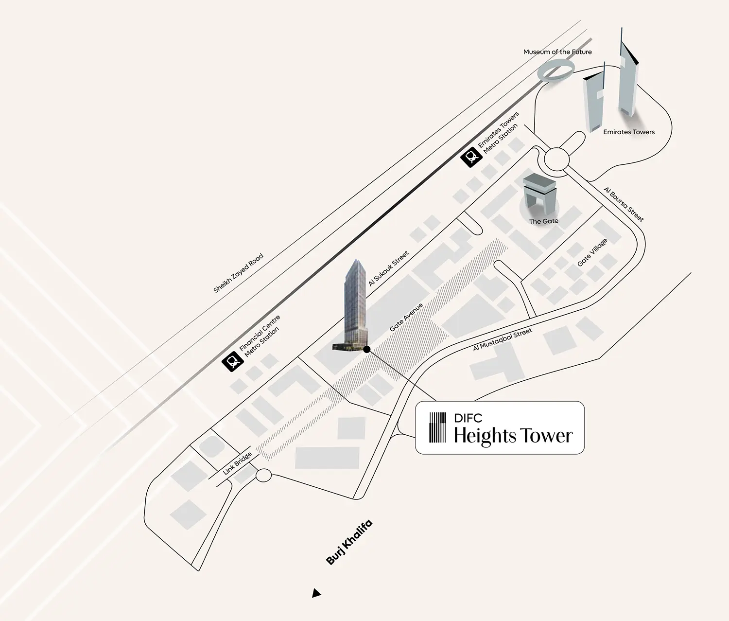 DIFC Heights Tower is developed by DIFC Development, master planned strategy that seamlessly integrates the professional spaces and leisure facilities. The development is thoughtfully divided into three key zones residential spaces, modern commercial areas, and recreational facilities. These zones are helpful in catering to the diverse needs of contemporary urban living. Through meticulous open-space landscaping, integrated retail zones, and exclusive lifestyle amenities, the project sets a benchmark for holistic living. Residents benefit from the good connectivity between professional commitments and leisure activities. It is supported by on-site business lounges, co-working areas, and entertainment offerings.