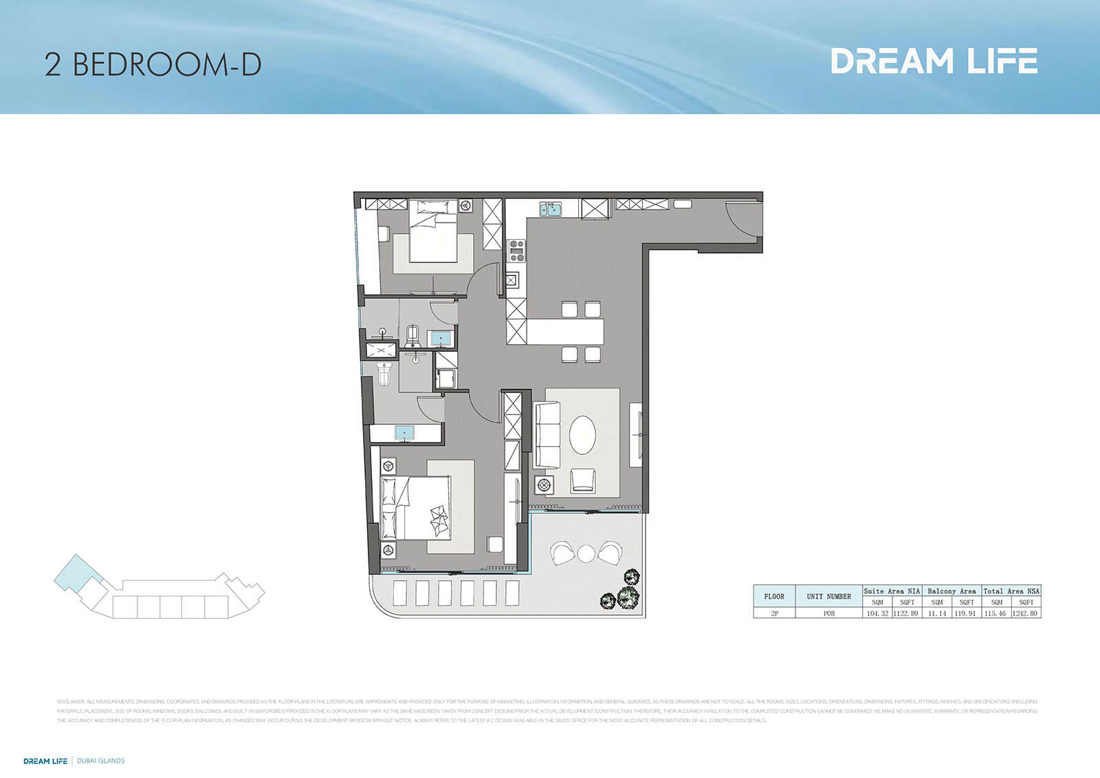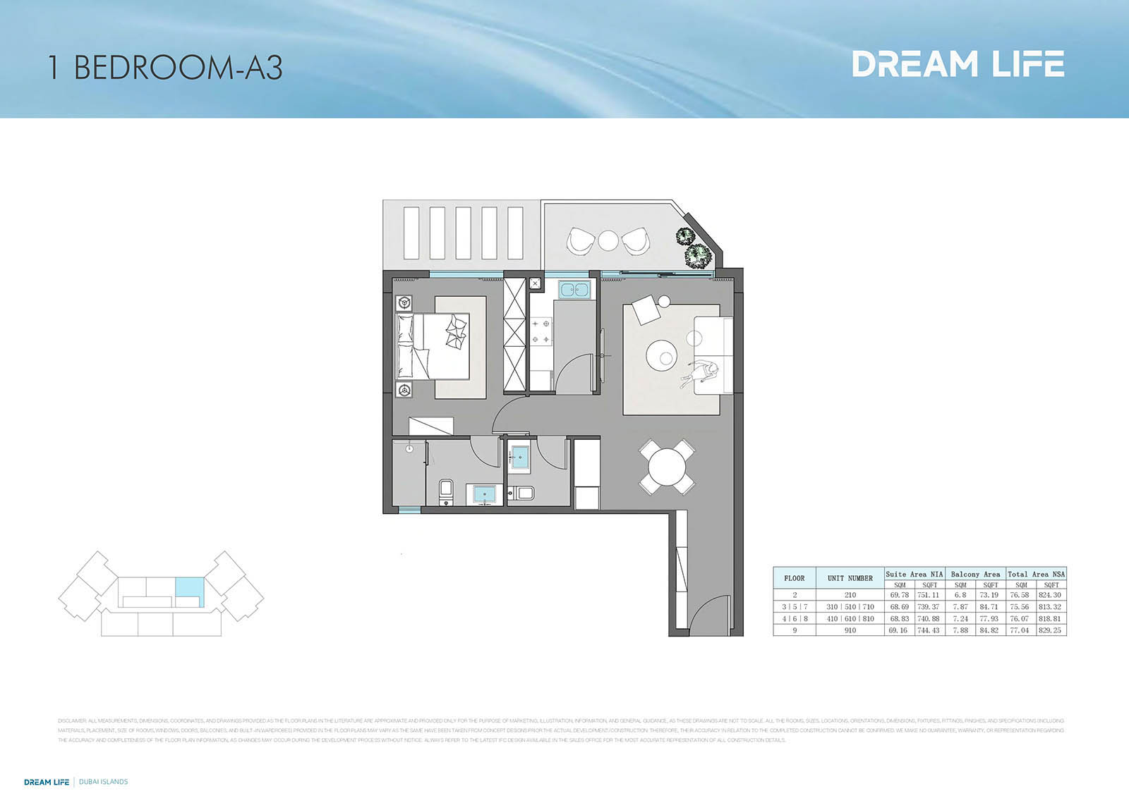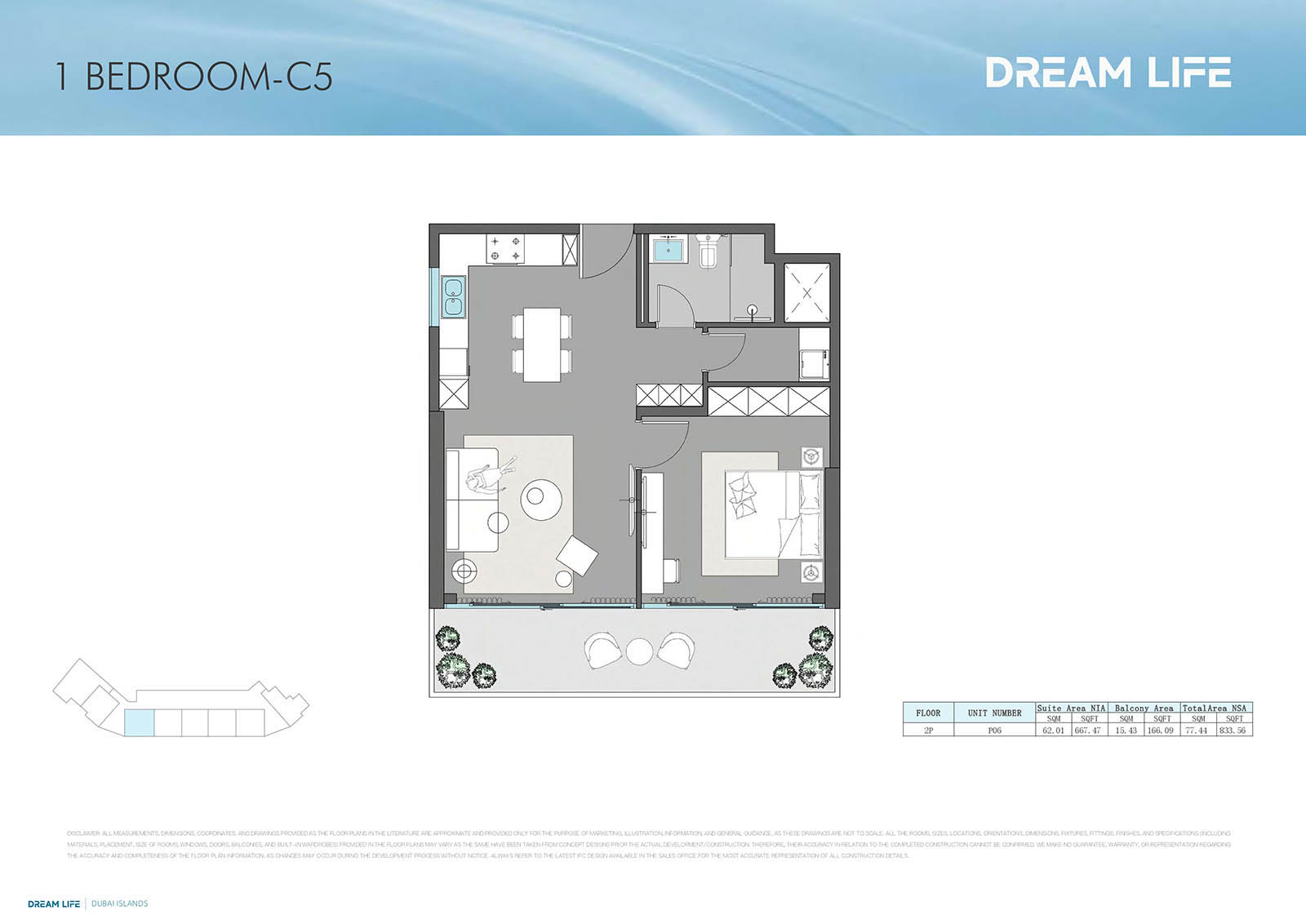 Dreamlife Residences is a coastal style residential development with designed floor plan at Dubai Island The architect and interior designer involves in crafting this project are from top class brand. This project focus on large and spacious bedrooms, wide living and dining area with a view of beautiful serene surrounding. Offering large and broad windows that allows natural lights and air throughout the living area.