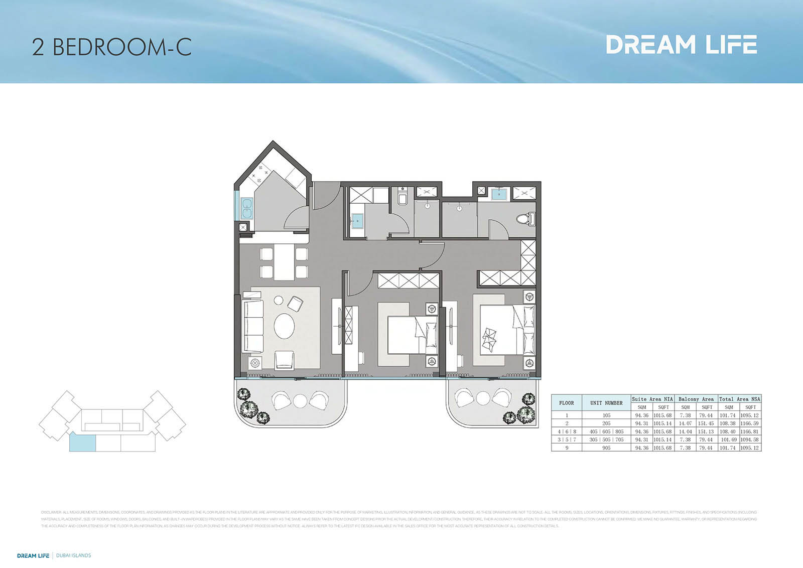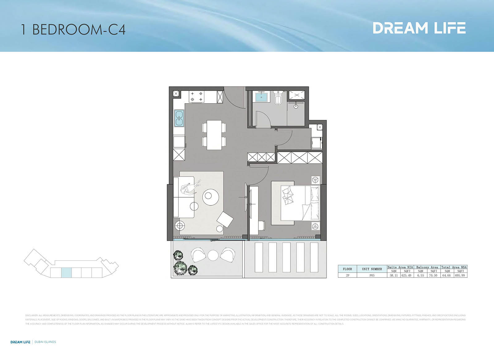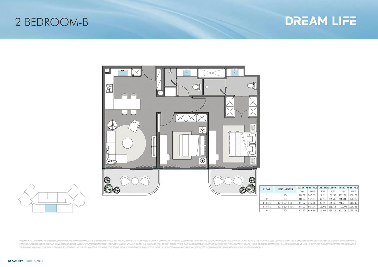 Dreamlife Residences is a coastal style residential development with designed floor plan at Dubai Island The architect and interior designer involves in crafting this project are from top class brand. This project focus on large and spacious bedrooms, wide living and dining area with a view of beautiful serene surrounding. Offering large and broad windows that allows natural lights and air throughout the living area.