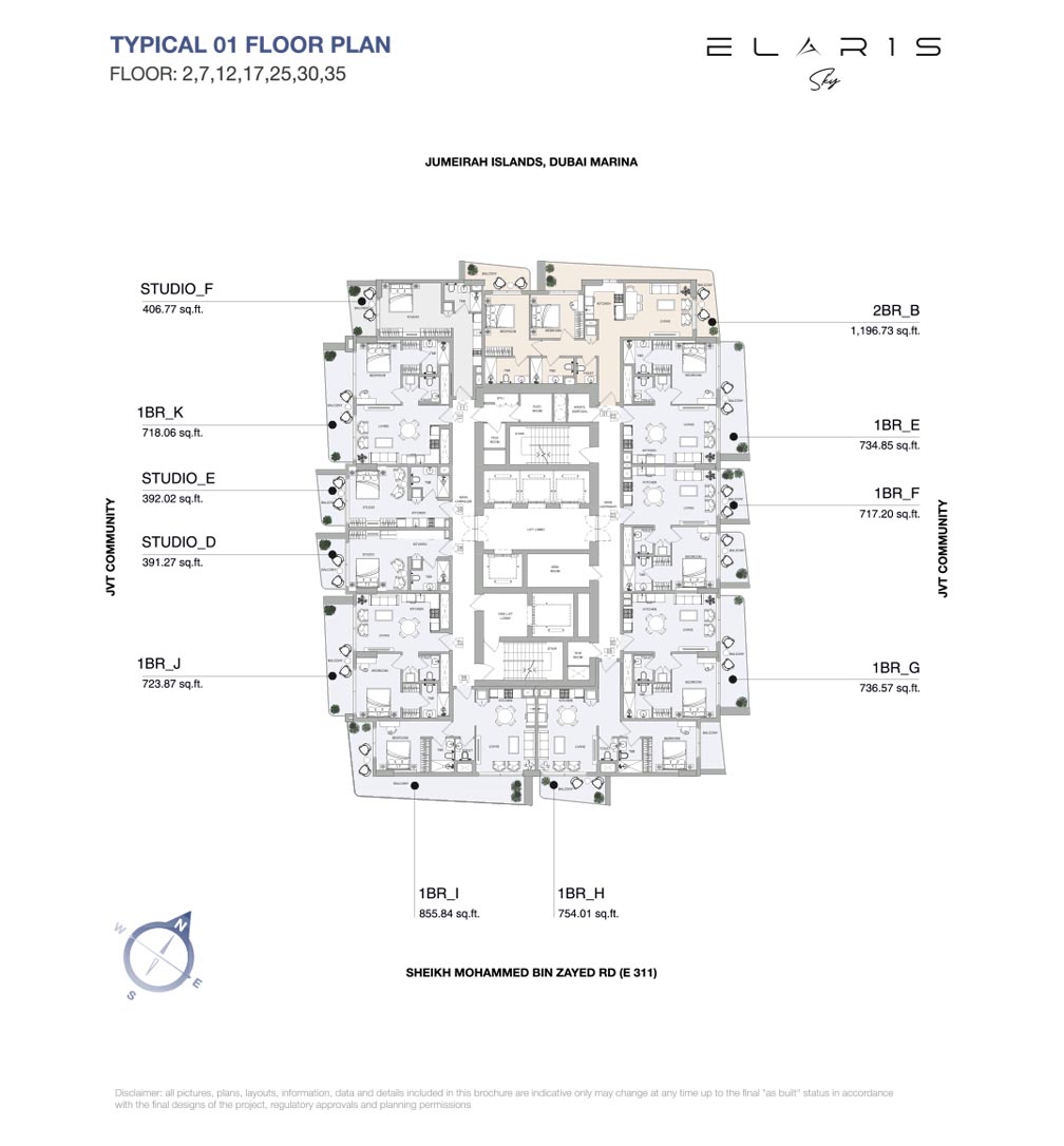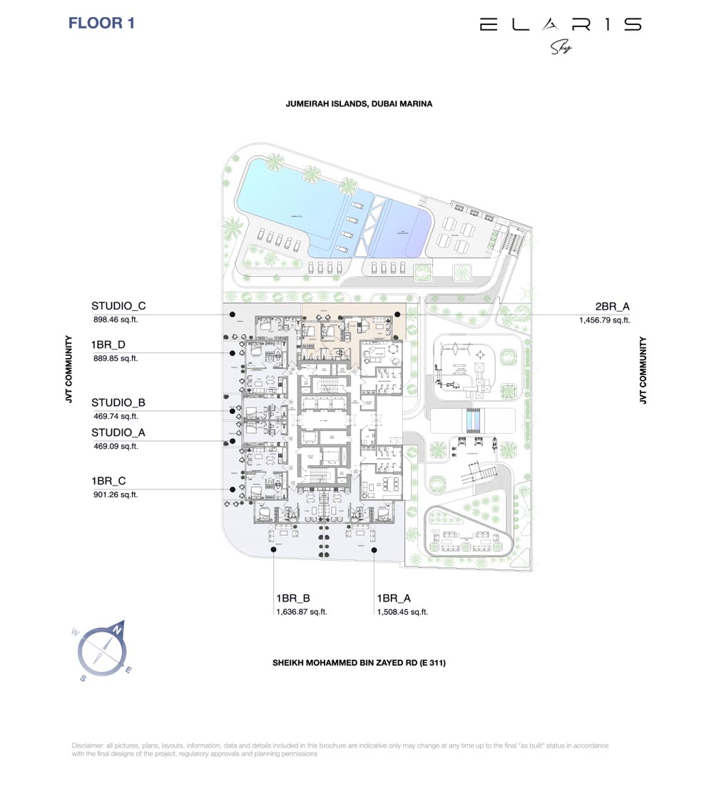 ELARIS Sky is a thoughtfully designed collection of studios, 1 & 2-bedroom apartments in Jumeirah Village Triangle (JVT), Dubai. That optimize space, natural light and comfort for today’s urban living, each home comes with modern open spaces including kitchens and living rooms, as well as private balconies that connect the indoors with its exquisitely-designed outdoors unit. The plans cater to families and singles alike with workable designs that are stylish, yet practical.