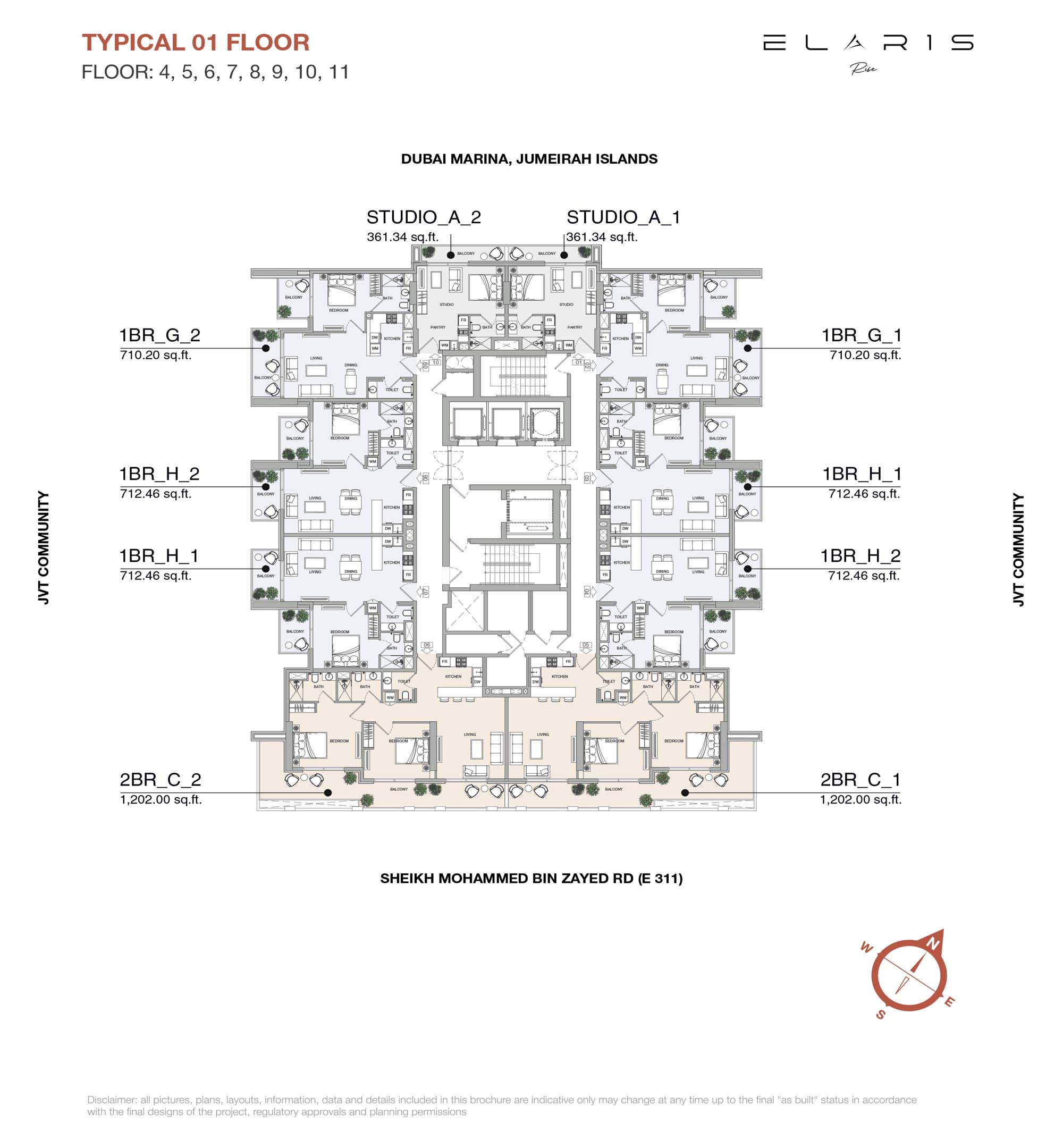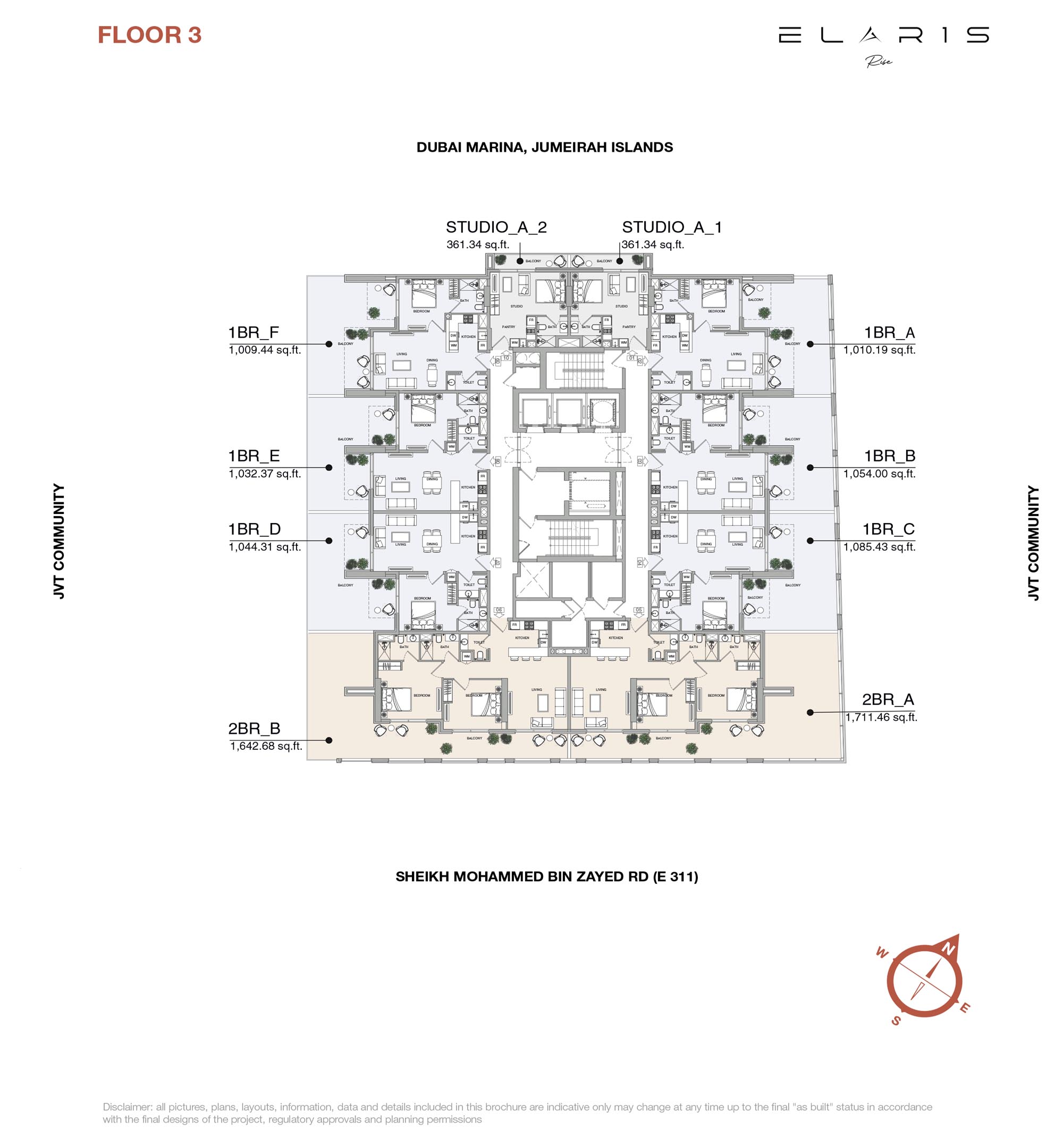 Elaris Rise in Jumeirah Village Triangle has introduced reasonably priced units offering studios, 1 & 2-bedroom apartments. With smart layouts to maximise space, comfort, and realism for modern city living. Every apartment design is well-planned to provide an open, airy feeling improved by plentiful natural light. The designs are made to find the perfect harmony between function and style, so each unit maximizes living space without sacrificing appearance or comfort. The floor plan of the building is set up for your convenience, with access to elevators, common areas and amenities all on the same level.