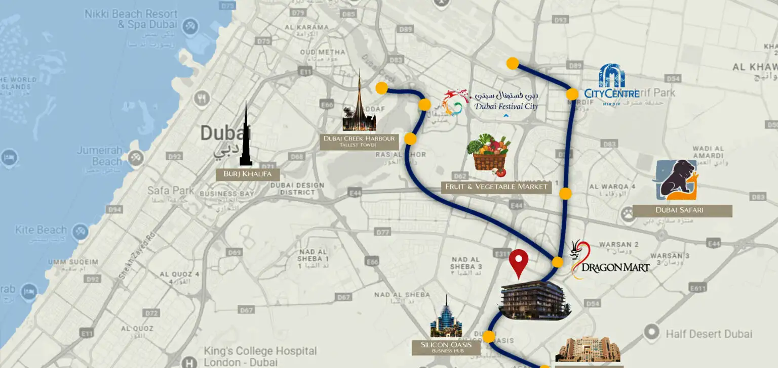 Location of this property Elevia Residences 3 is at the prime location of Dubai International City 2 that connects to all the key areas of the city. Being located in the heart of the city and also close to nature, it creates a best environment to live in for future. Things like supermarkets, shopping malls, parks area, retail area with innovative economic hubs and many more. The position of the property has vibrant neighborhood makes this a position of reliable option for living, working and leading a balanced family-oriented lifestyle. Roadways like Sheikh MBZ Road connects the city and makes it easy to explore an easier and conveyance advantage throughout the city such as Ras Al Khor, Design District, and Dubai Mall.