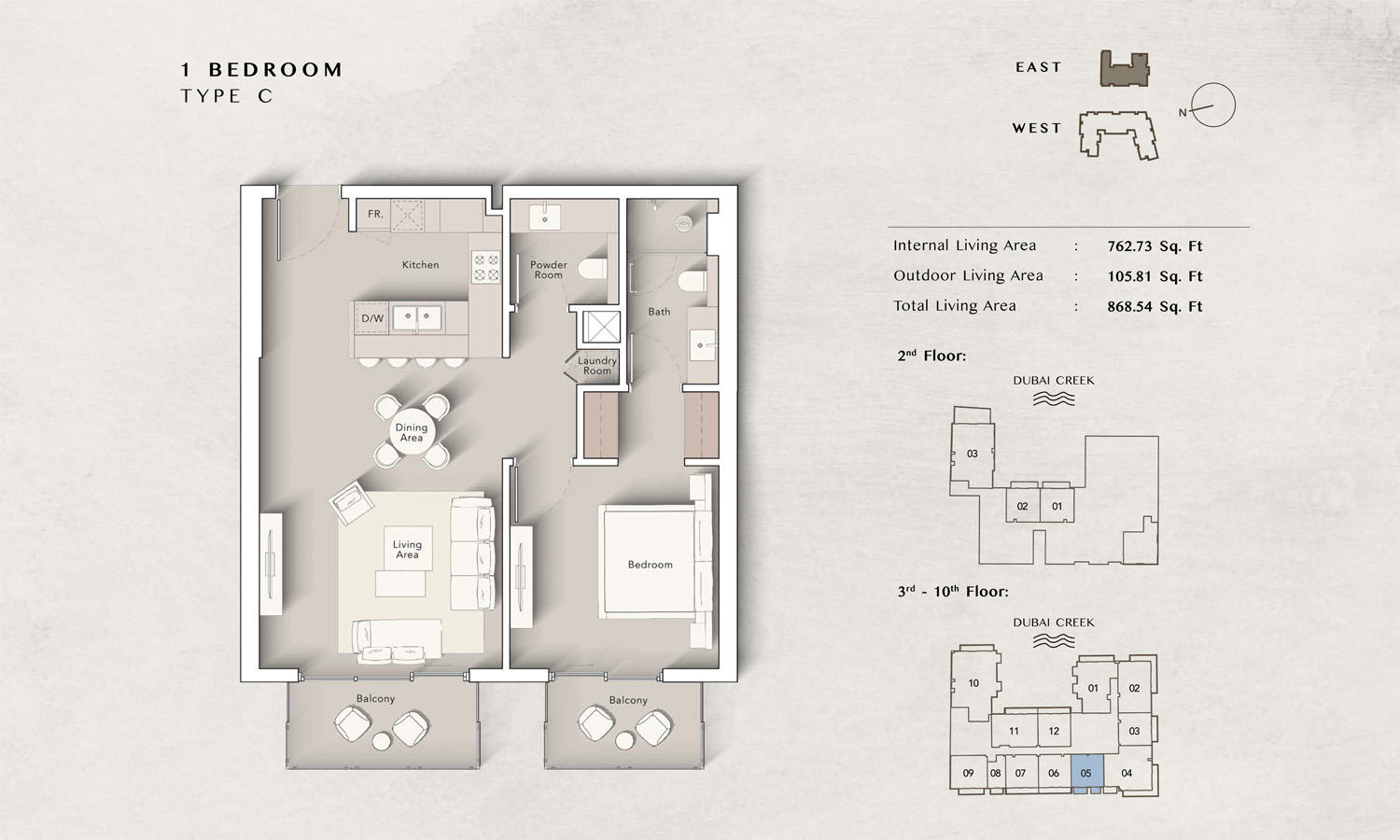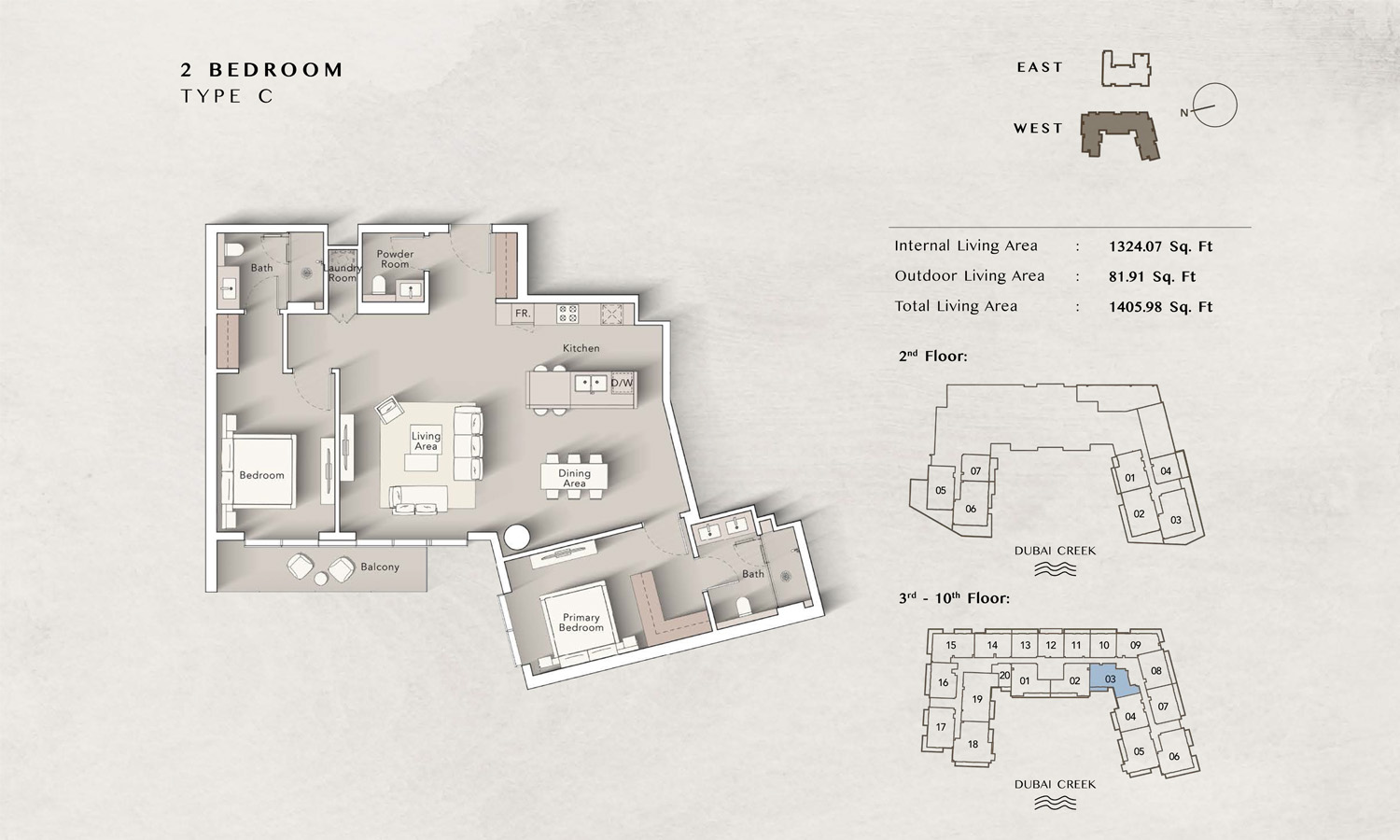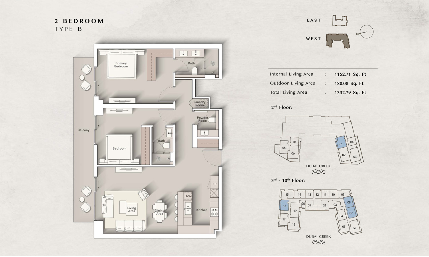 The Art Bay East Tower floor plans by Ellington Properties offers studios to spacious 3-bedroom apartments, with an enormous size variation. 8 Studio units introduce an efficient living space starting at 430 square feet, while all 50 1-bedroom units are much larger and range between 862 to 959 square feet. For those seeking even more living room space, there are 32 2-bedroom units that vary from 1211 to 1692 square feet, while all 9 3-bedroom units go to 2147 square feet. Large windows and big balconies allow more natural light and ventilation in space.