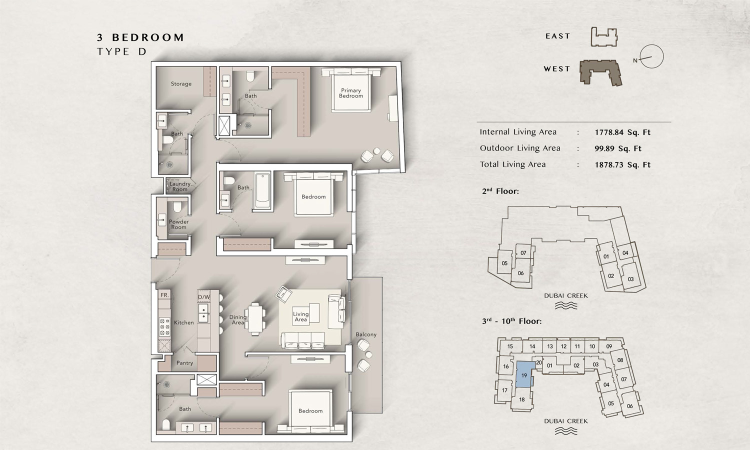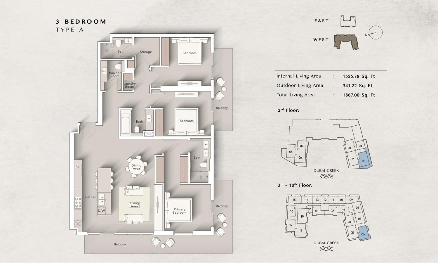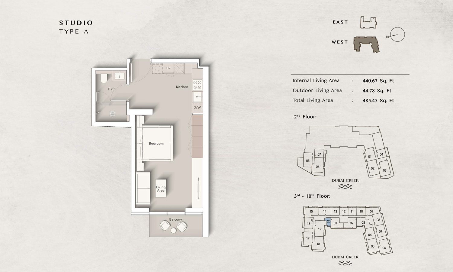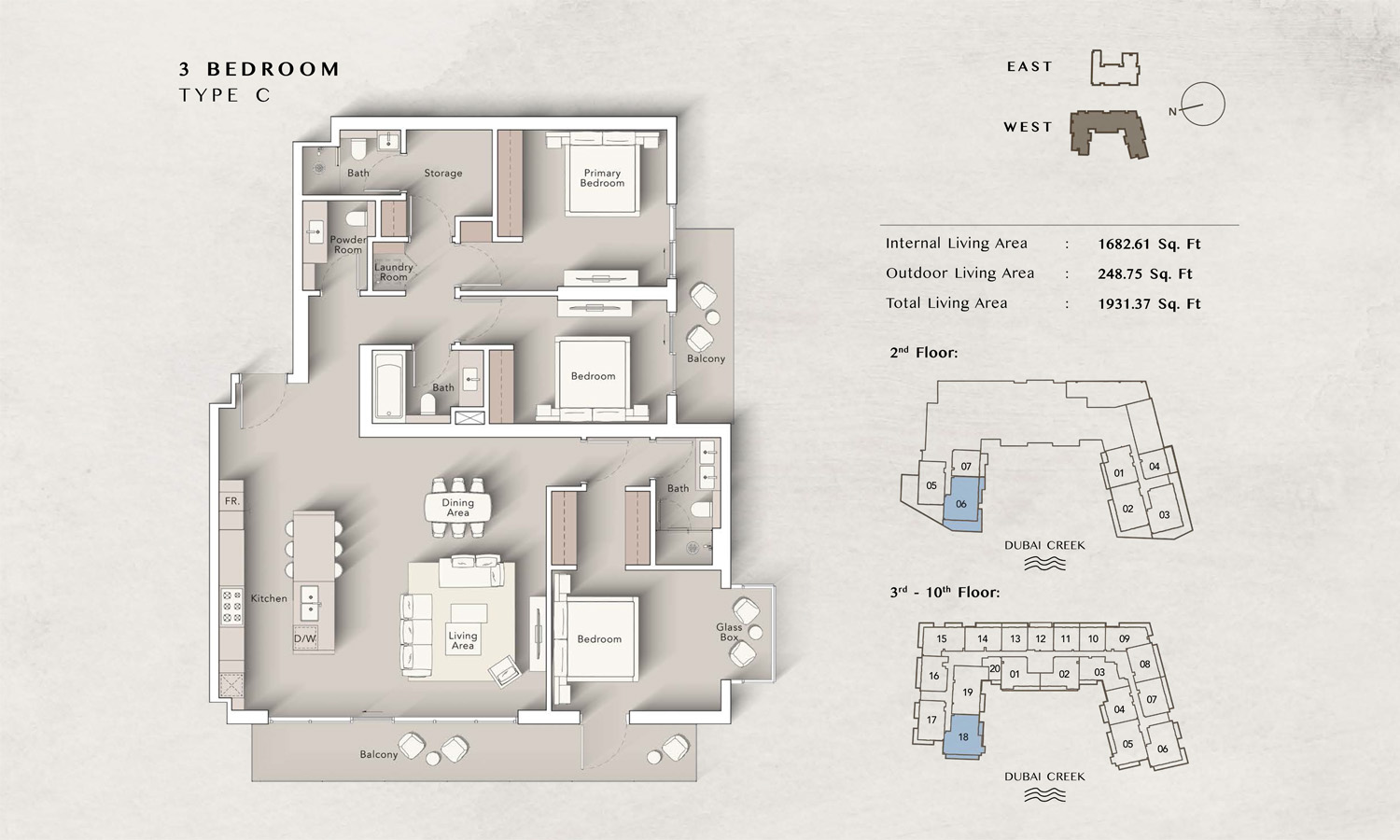 The Art Bay East Tower floor plans by Ellington Properties offers studios to spacious 3-bedroom apartments, with an enormous size variation. 8 Studio units introduce an efficient living space starting at 430 square feet, while all 50 1-bedroom units are much larger and range between 862 to 959 square feet. For those seeking even more living room space, there are 32 2-bedroom units that vary from 1211 to 1692 square feet, while all 9 3-bedroom units go to 2147 square feet. Large windows and big balconies allow more natural light and ventilation in space.