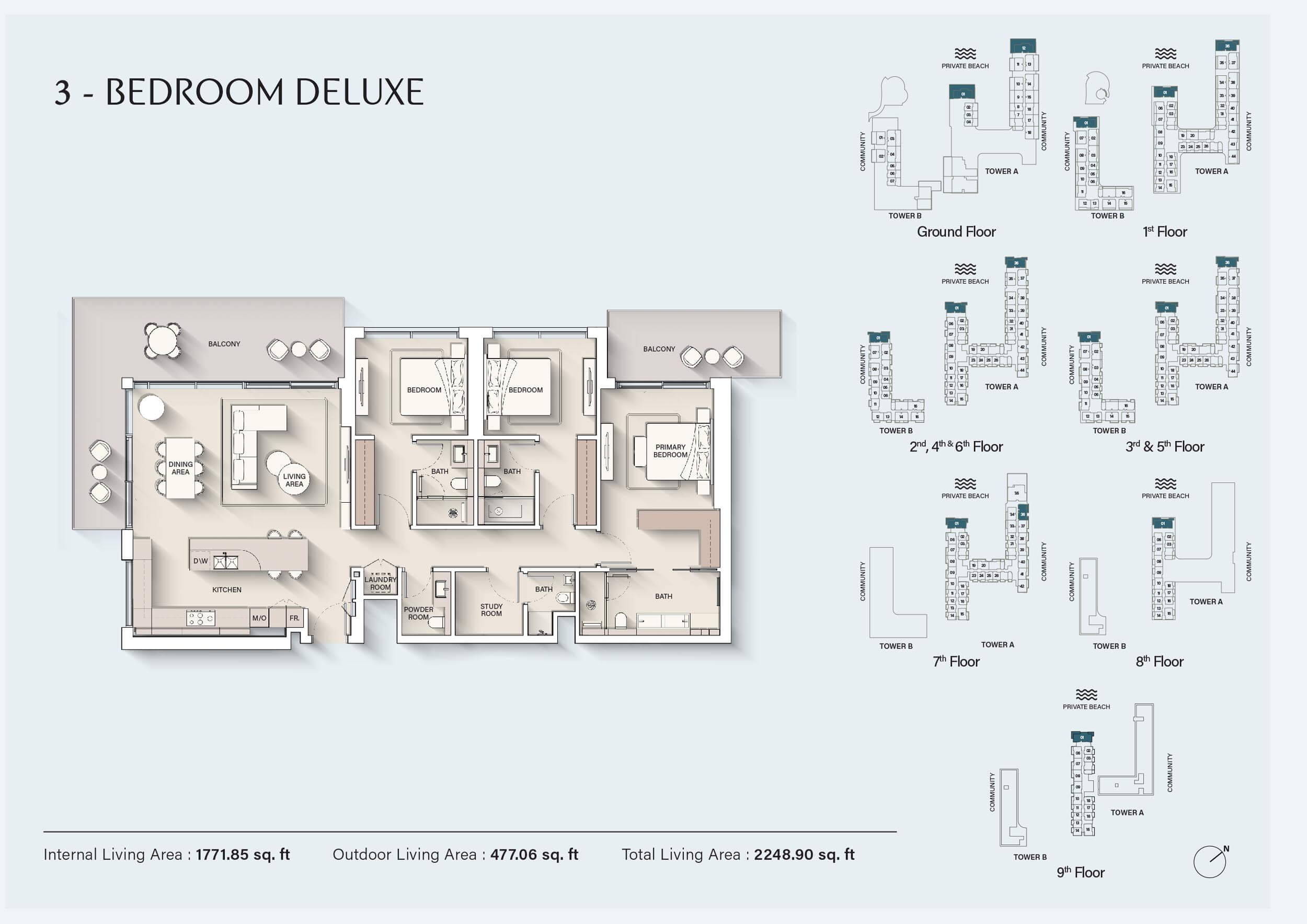 Ellington Cove 2 at Dubai Islands offers a floor plan of studios to 1–3-bedroom layouts with 3-bedroom deluxe and the exclusive four-bedroom penthouse. It is a testament to elegance and intentional design. Each home is made to feel bright, open, and peaceful bringing in lots of natural light and capturing the calm feeling of coastal living. Each layout is created with comfort and convenience in mind, giving you the space you need without sacrificing style or function. The larger units provide extra space for relaxing or entertaining, and is perfect for anyone looking for the best in upscale coastal living. It is designed to make the most of natural light and to create a bright, airy atmosphere.