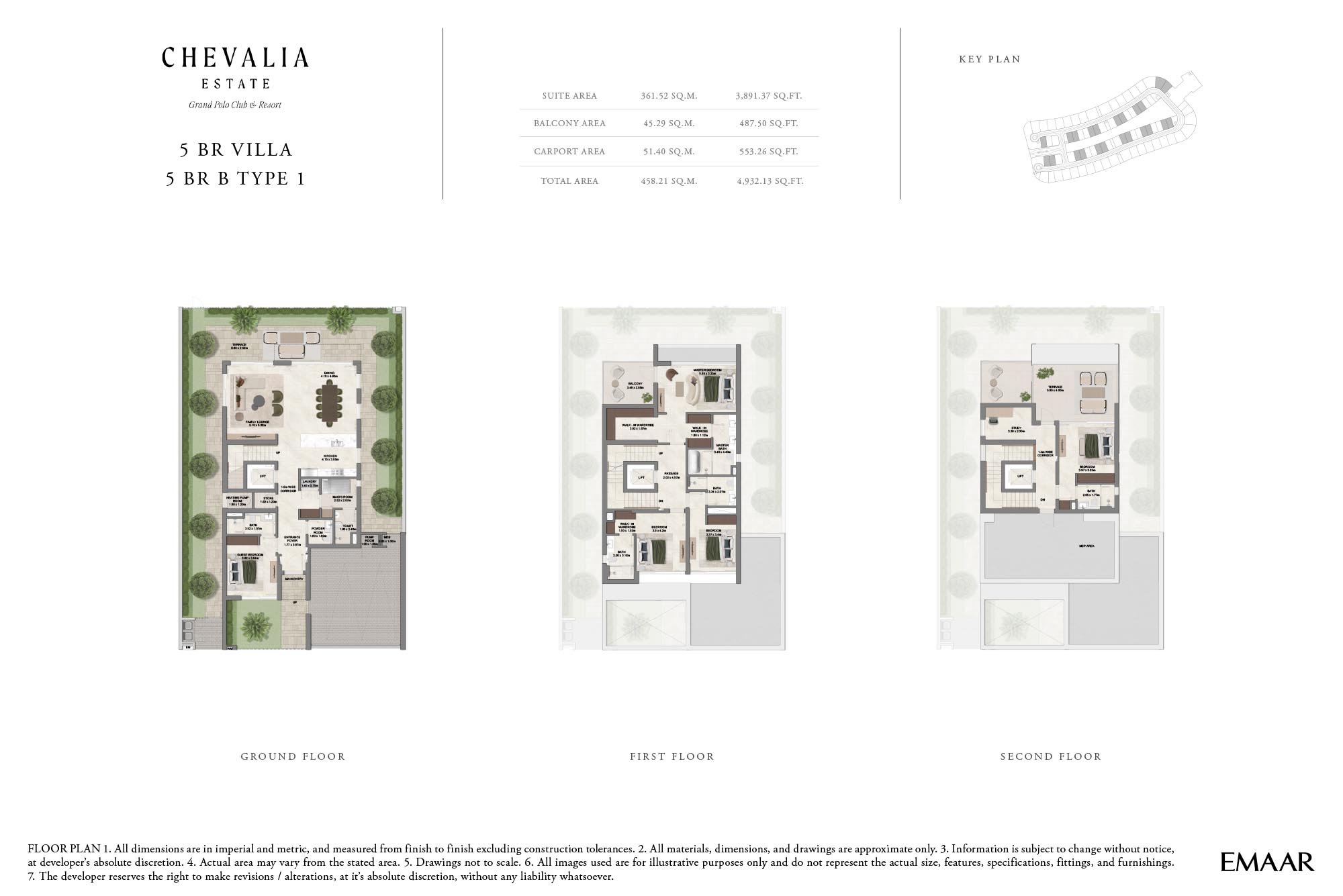 Chevalia Estate is having exclusive floor plans of premium 5-bedroom villas located at Grand Polo Club & Resort that is built to meet the luxury requirement of homebuyers. The builder has planned only 80 five-bedroom villas to keep its exclusivity intact and going to use best quality materials and premium interiors. Each villa is having grand entrance area, guest room, living and dining area, modern kitchens and master bedroom, terrace and balconies. Each room of this property is a living masterpiece, where all the elements are designed to create an ambiance of luxurious style.