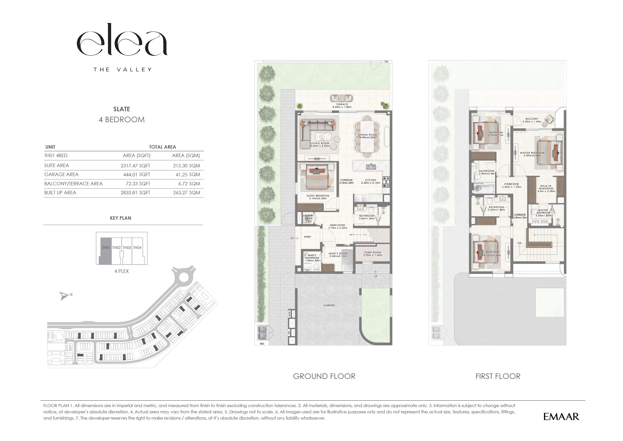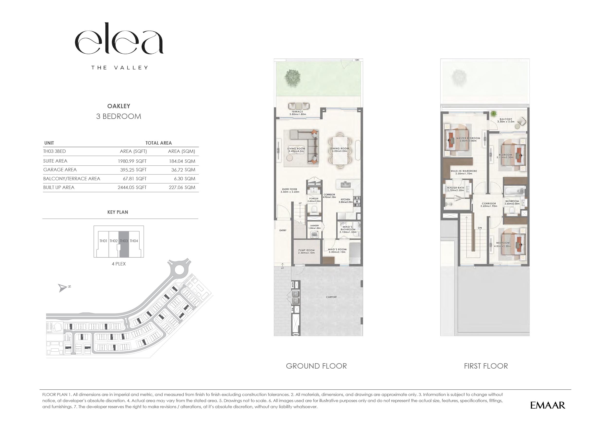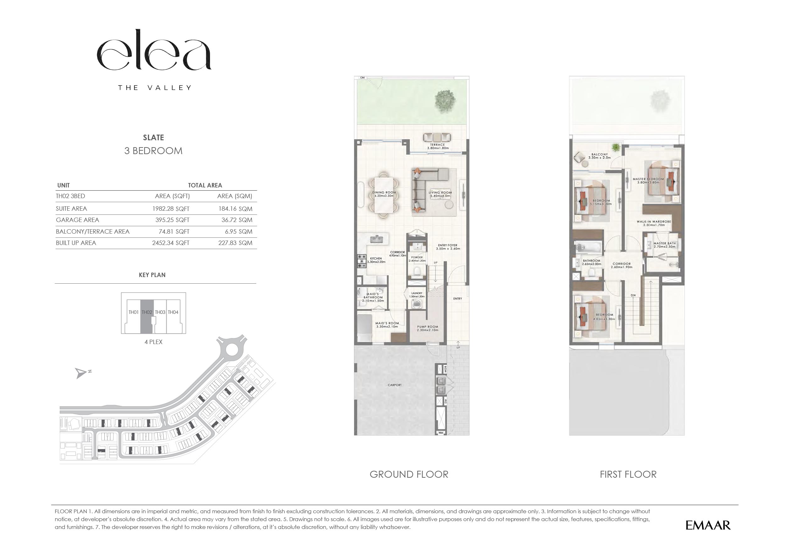 Elea at The Valley, Dubai offers an exceptional range of floor plans designed to cater to a variety of lifestyle preferences, including the 3 & 4-bedroom Slate and Oakley collections. The community features meticulously crafted townhouses and villas, each designed with modern aesthetics and functional layouts. The open-plan designs create a seamless flow between the living, dining, and kitchen areas, enhancing the sense of space and promoting effortless living. Large windows allow natural light to flood the interiors, infusing the space with warmth and creating a welcoming ambiance. The interiors are thoughtfully crafted to offer both adaptability and a tranquil foundation. A refined neutral palette serves as a canvas for personalization, empowering residents to imbue their living spaces with their distinct style and vision.