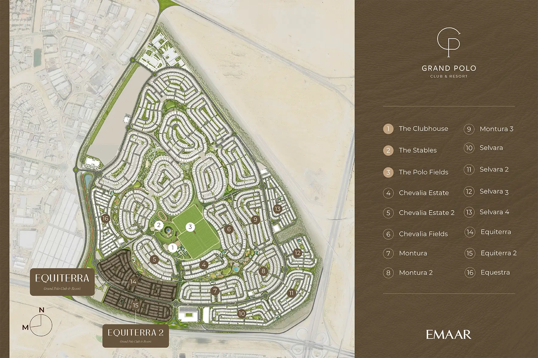 The master plan of Equiterra is created by Emaar Properties to develop a premium community at Grand Polo Club & Resort. The plan includes building world class residential units adjacent to the emerald polo fields and create a combination of serene environment and urban lifestyle. The whole community is planned based on the equestrian style and themed on green and sustainable lifestyle. Residences are designed to provide comfort and coziness along with ample open area, parks and gardens and terraces are meant to offer breathtaking views of polo fields and green landscapes. There are all the necessary amenities such as modern styled restaurants, cafes, retail shops, spa and salons is available in nearby area.