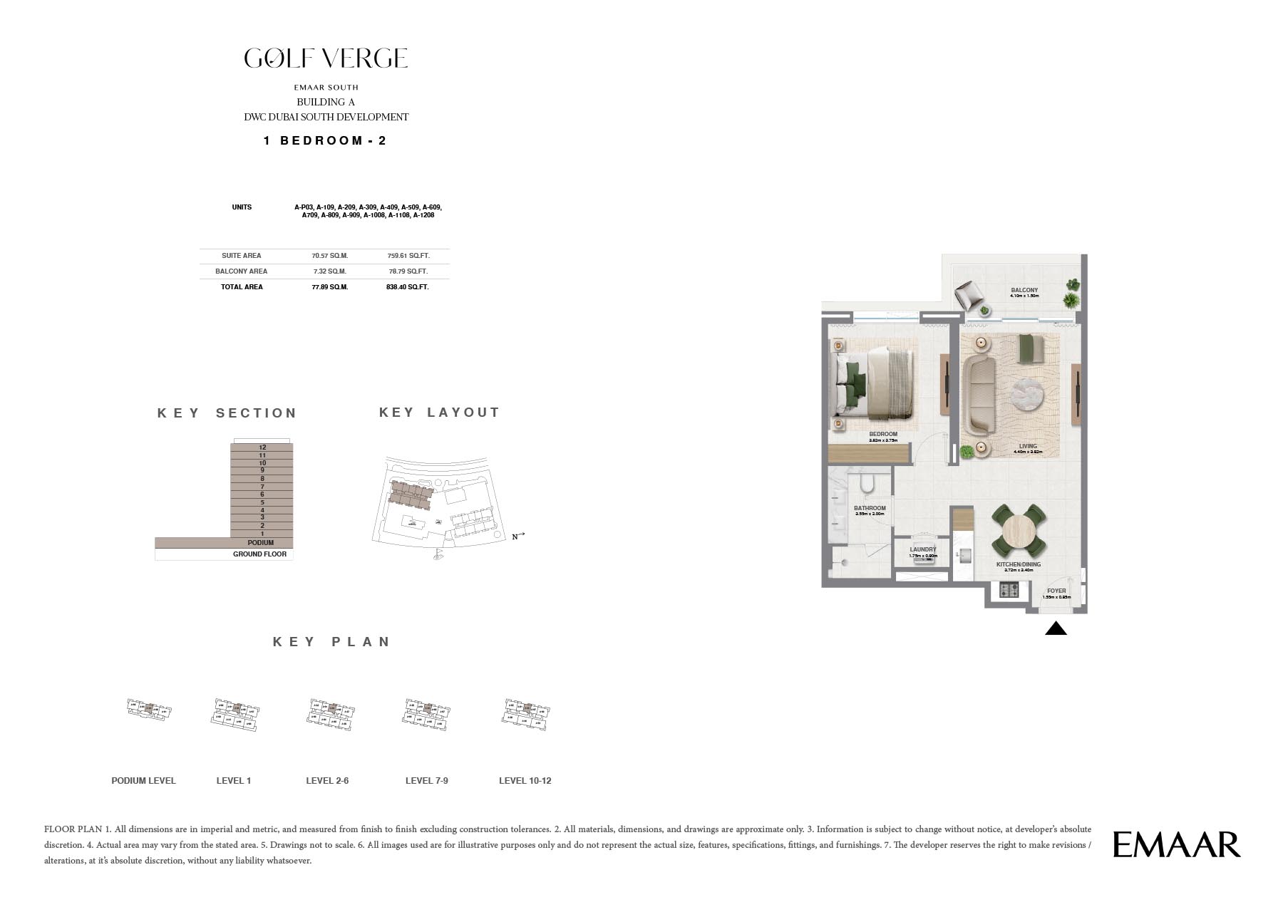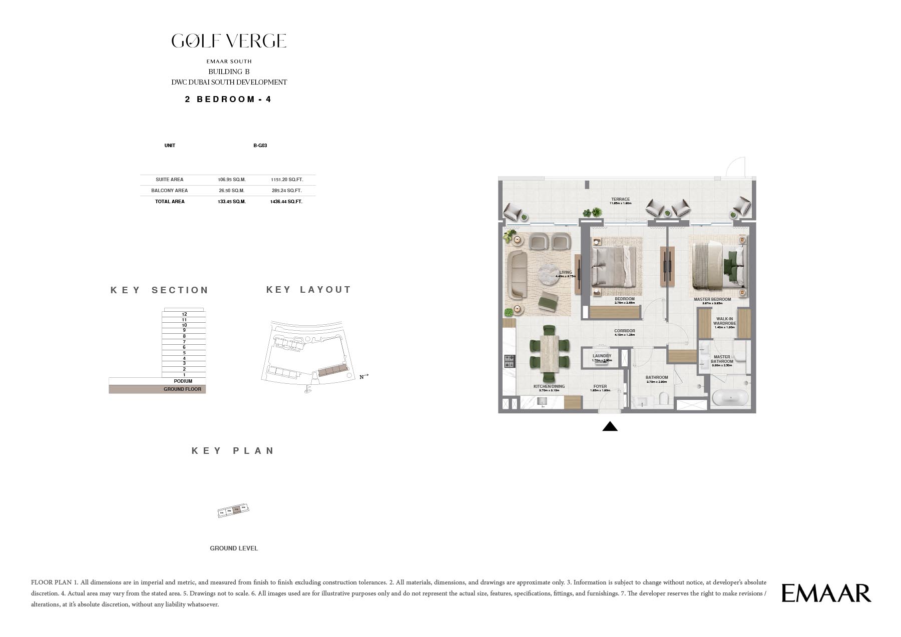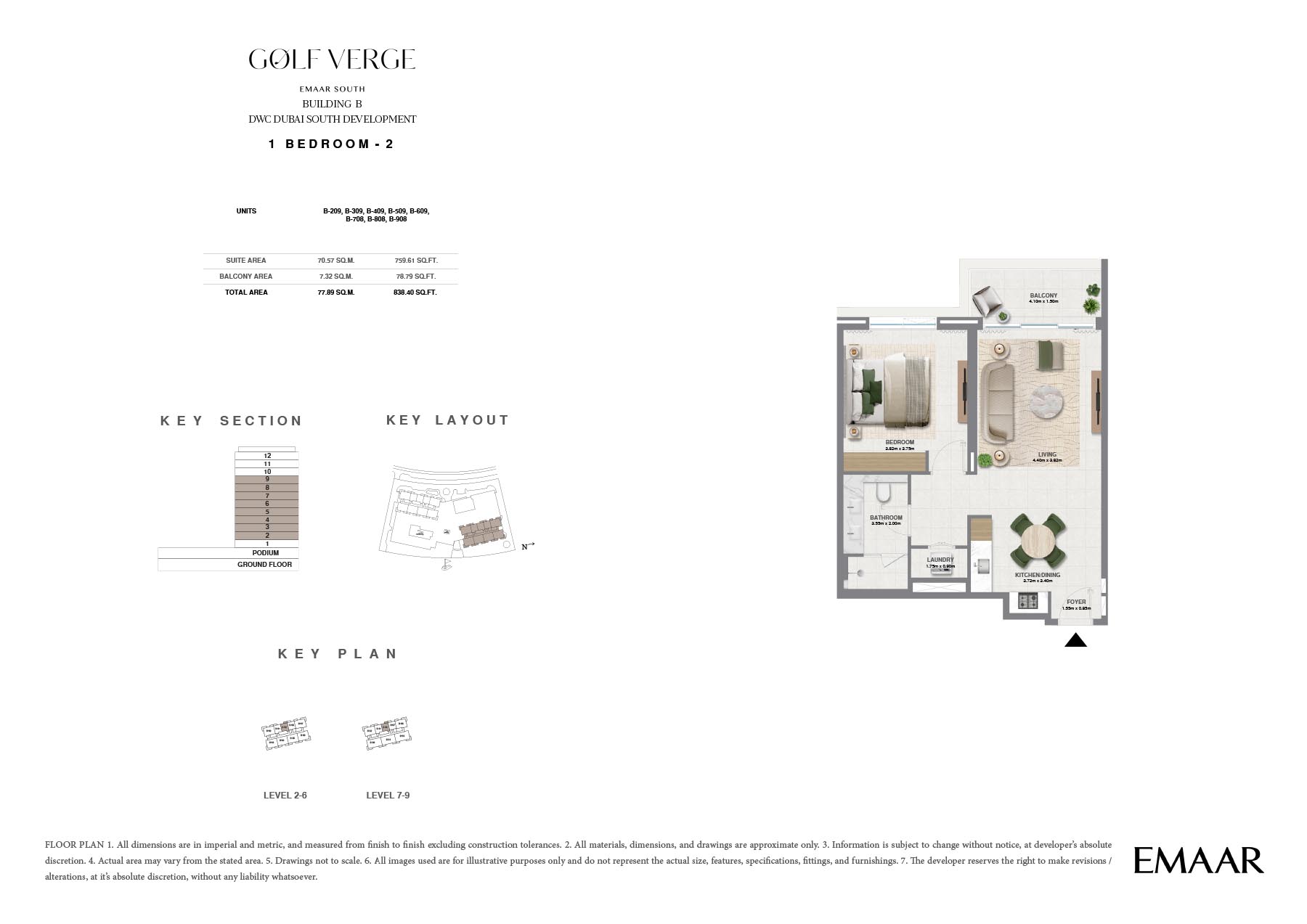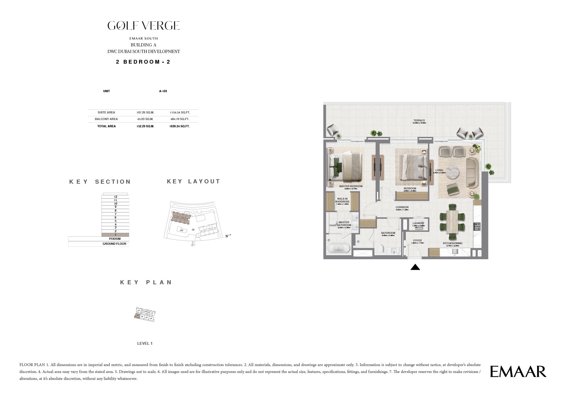 Golf Verge at Emaar South, offers a range of unique floor plans designed to cater to the varying needs of contemporary families. Well thought out, each residence includes spacious interior areas, upscale finishes and oversized windows that allow for lots of natural light to flow into its homes. The design beautifully embodies luxury and elegance ensuring a secured living and providing utmost comfort and convenience.