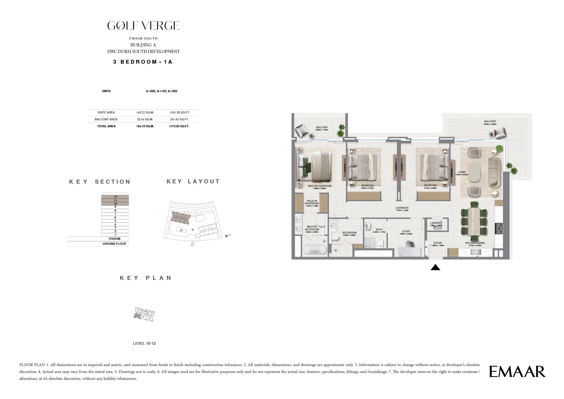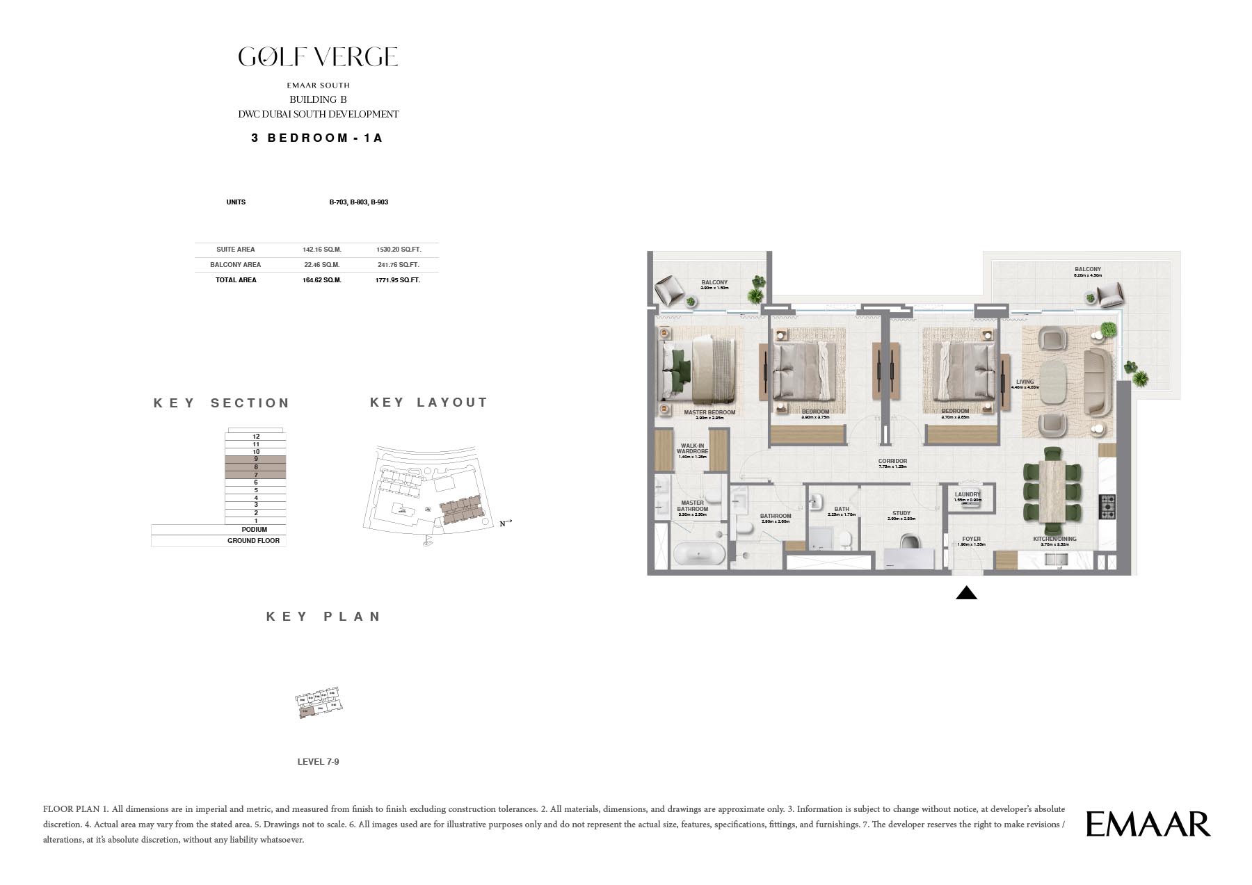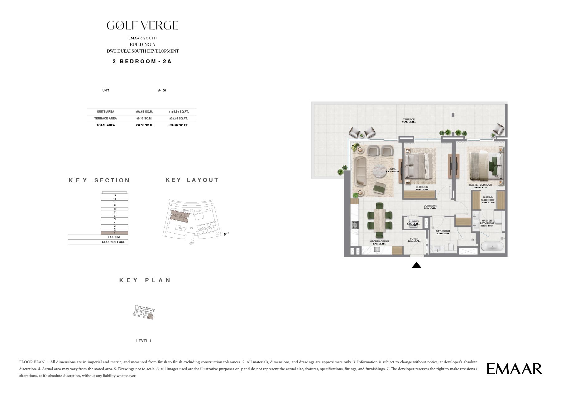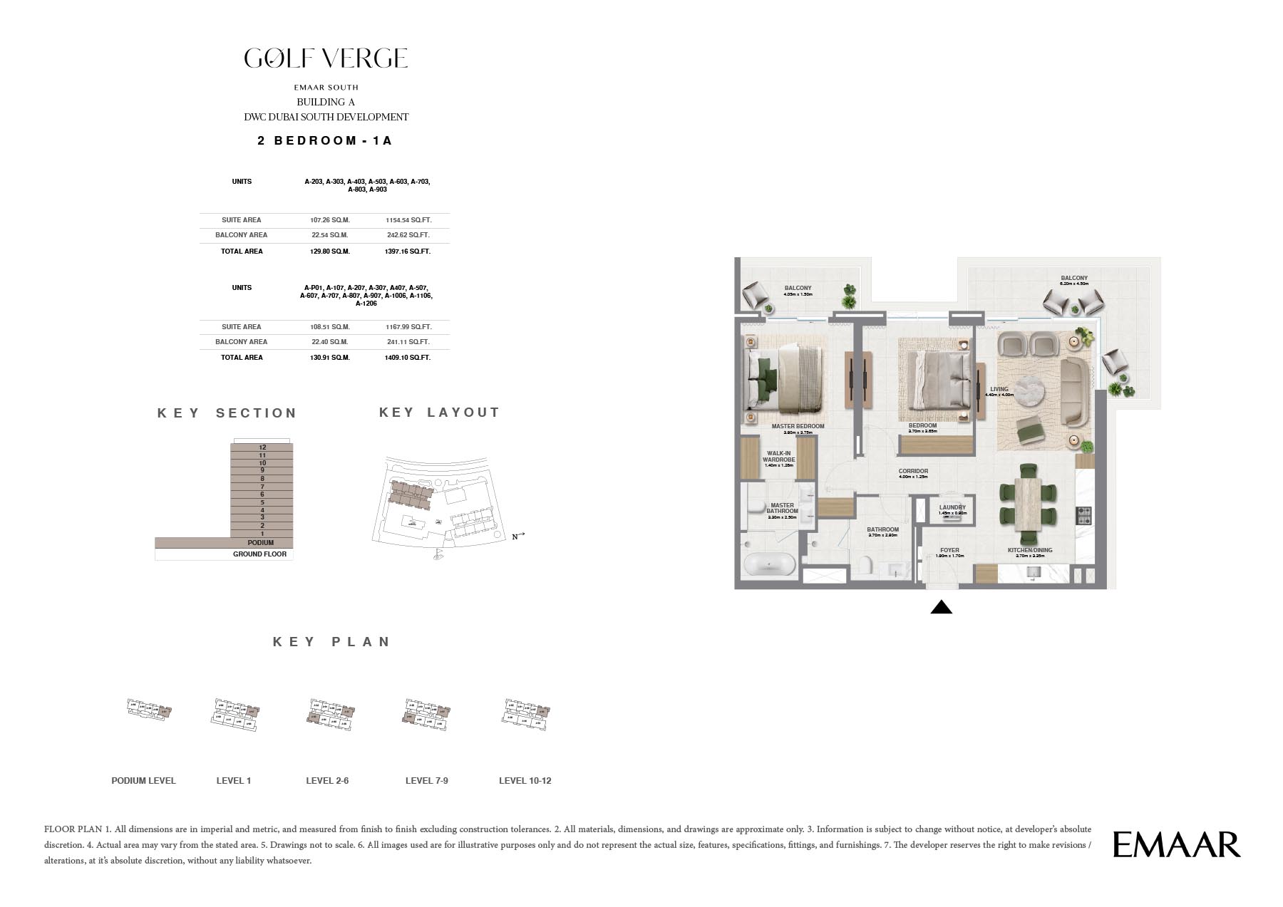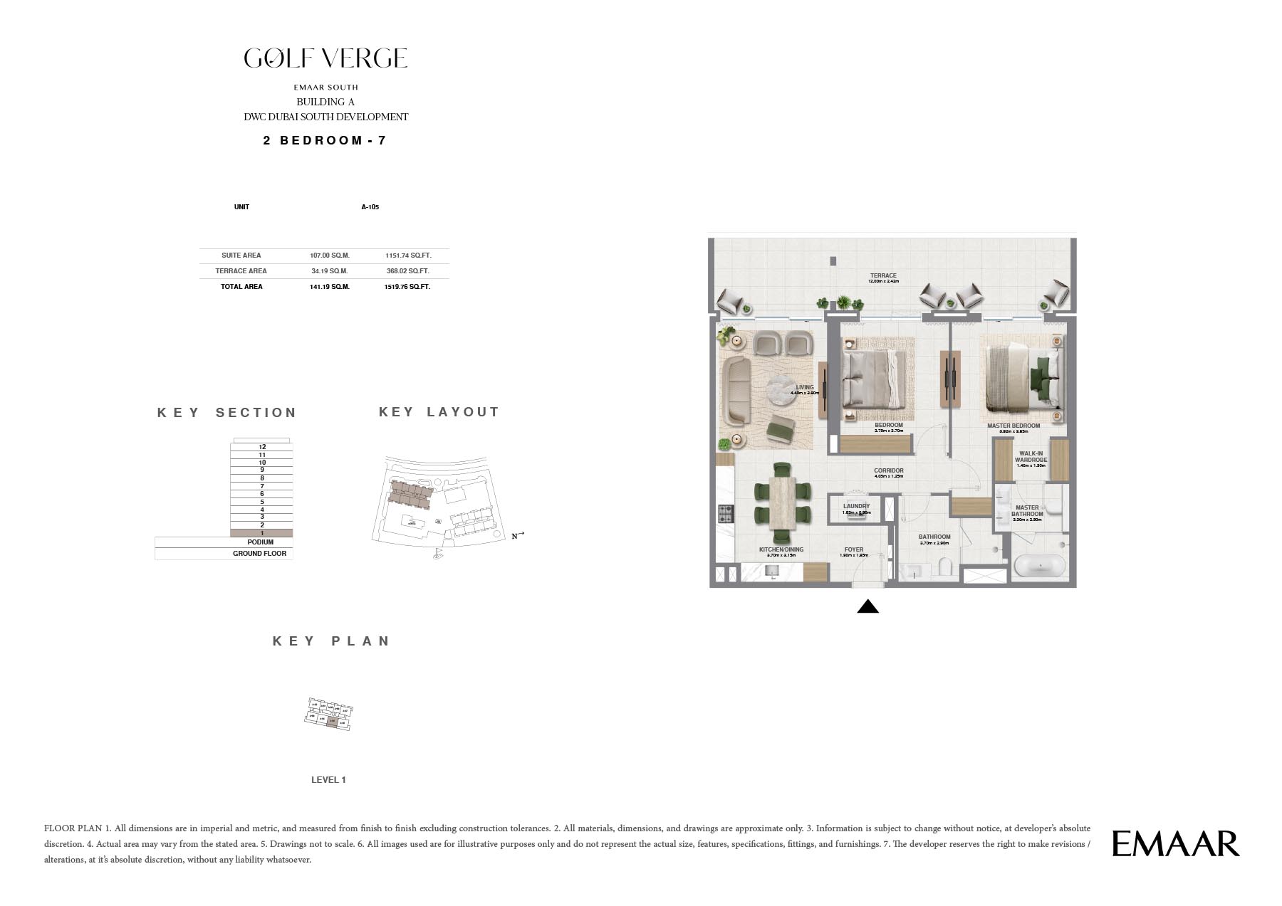 Golf Verge at Emaar South, offers a range of unique floor plans designed to cater to the varying needs of contemporary families. Well thought out, each residence includes spacious interior areas, upscale finishes and oversized windows that allow for lots of natural light to flow into its homes. The design beautifully embodies luxury and elegance ensuring a secured living and providing utmost comfort and convenience.