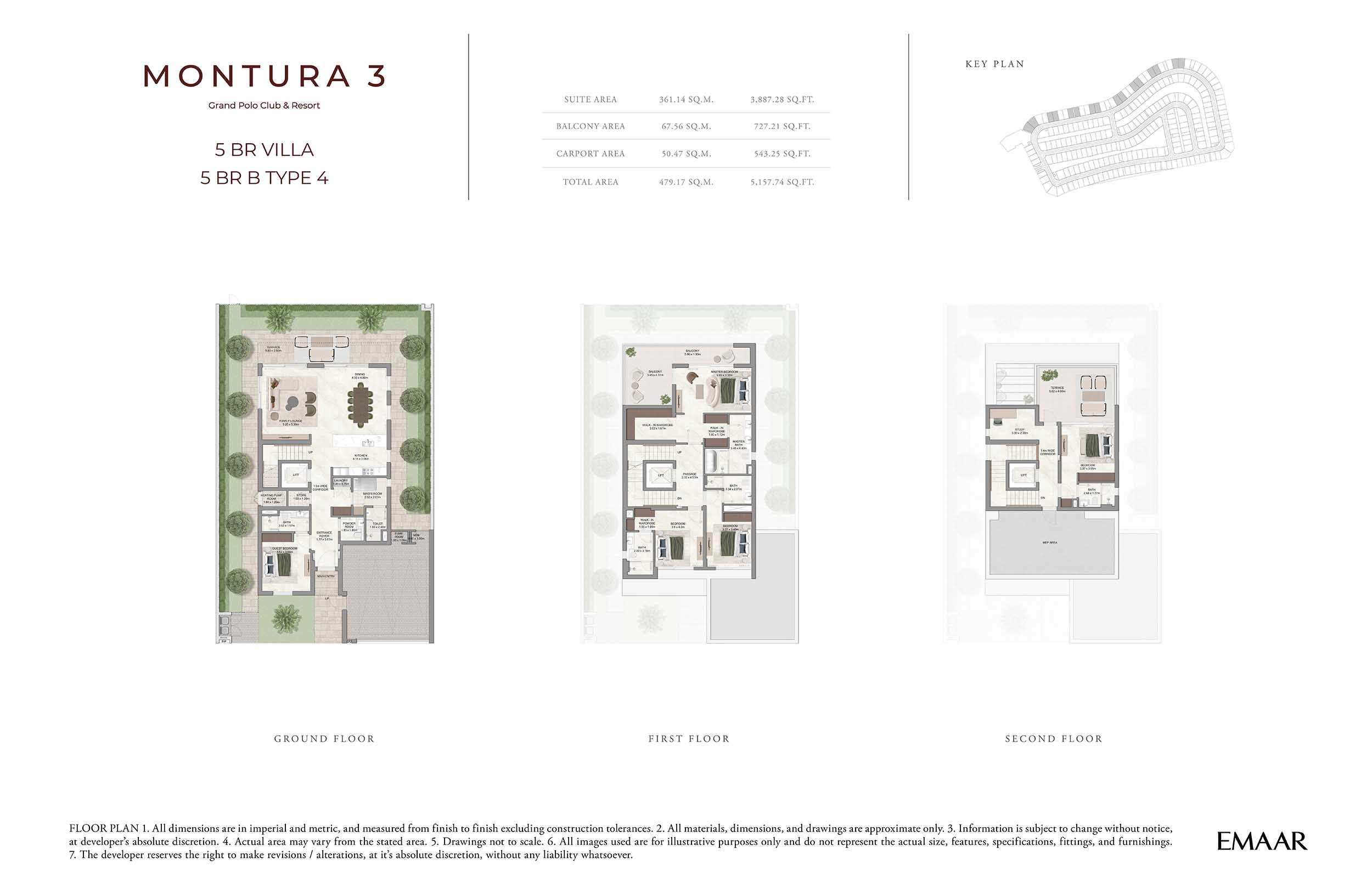 Montura 3 comes with specifically designed floor plans for contemporary living at 4 and 5-bedroom villas at Grand Polo Club & Resort. The floor plan is having larger courtyards and enough spaces in indoor areas whereas size of rooms is also larger to generate an open and welcoming home environment. The builder is planned to use best quality materials, premium interiors and smart systems for this development which provide comfort along with luxury living standards. The residents of this modern property will also appreciate the openness and having features that allows to enjoy the views of green surroundings from their villas.