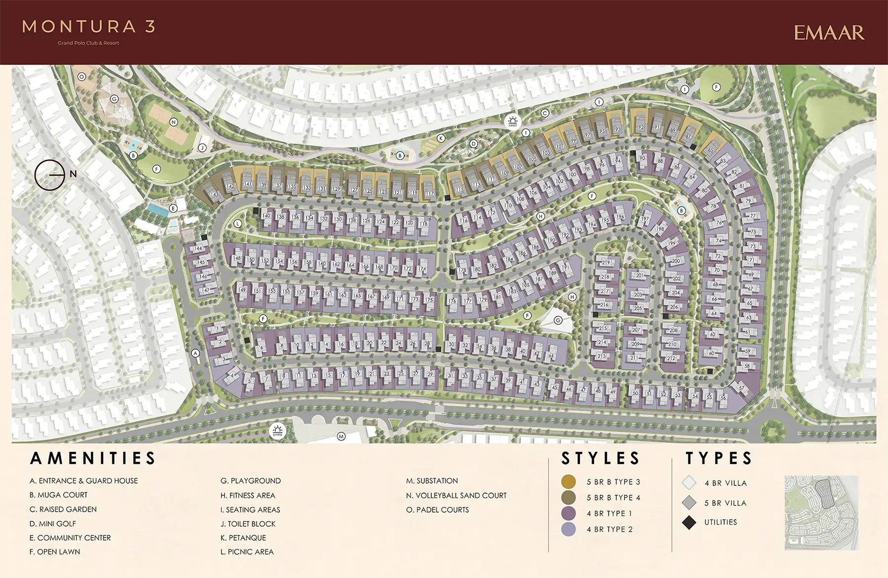 Emaar Properties has designed the master plan of Montura 3 to offer superior lifestyle at its 4 and 5-bedroom villas located at Grand Polo Club & Resort. This development is having everything that is preferred by families and the builder has kept its focus on security and privacy even after offering openness within the property. The property is planned with a number of parks and landscaped gardens along with greenery and self-sustainability features and residents of this community will enjoy the scenic view of polo fields. All the villas are developed with by using best class features and amenities and it shall allow residents to take a walk in and around the property and landscaped nature while enjoying the facilities of the clubhouse.
