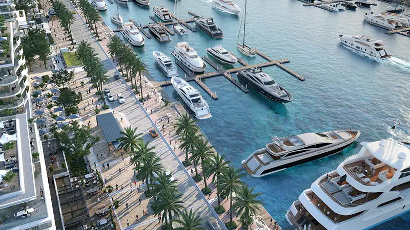 - An exclusive yacht club, fine dining, and shops all within reach.